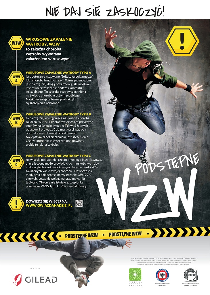 Kształtowanie zachowań zdrowotnych w zakresie przeciwdziałania chorobom zakaźnym stanowi ważny element działań edukacyjnych w szkole, dlatego jak co roku nasza szkoła przystąpiła do udziału w programie „Podstępne WZW”. Jest to program edukacyjny poświęcony profilaktyce zakażeń wątroby wirusami typu HAV, HBV i HCV. Został on opracowany przez Fundację Gwiazda Nadziei ” w partnerstwie z Wojewódzkimi Stacjami Sanitarno-Epidemiologicznymi oraz objęty honorowym patronatem Głównego Inspektora Sanitarnego i Polskiego Towarzystwa Hepatologicznego.