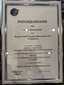 Wzorowi wolontariusze wydarzenia integracyjnego „Aktywni z Lotką- Dzień aktywności motorycznej”