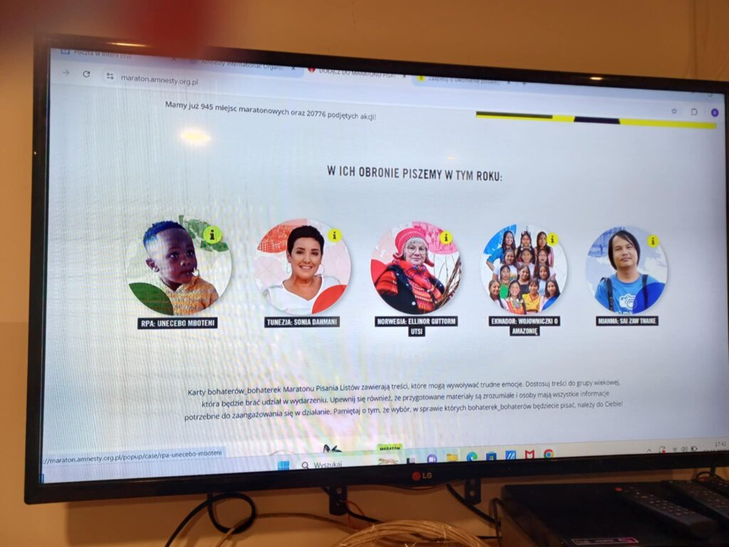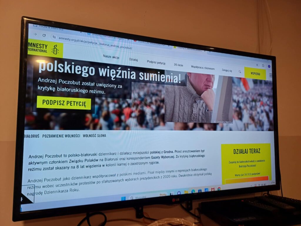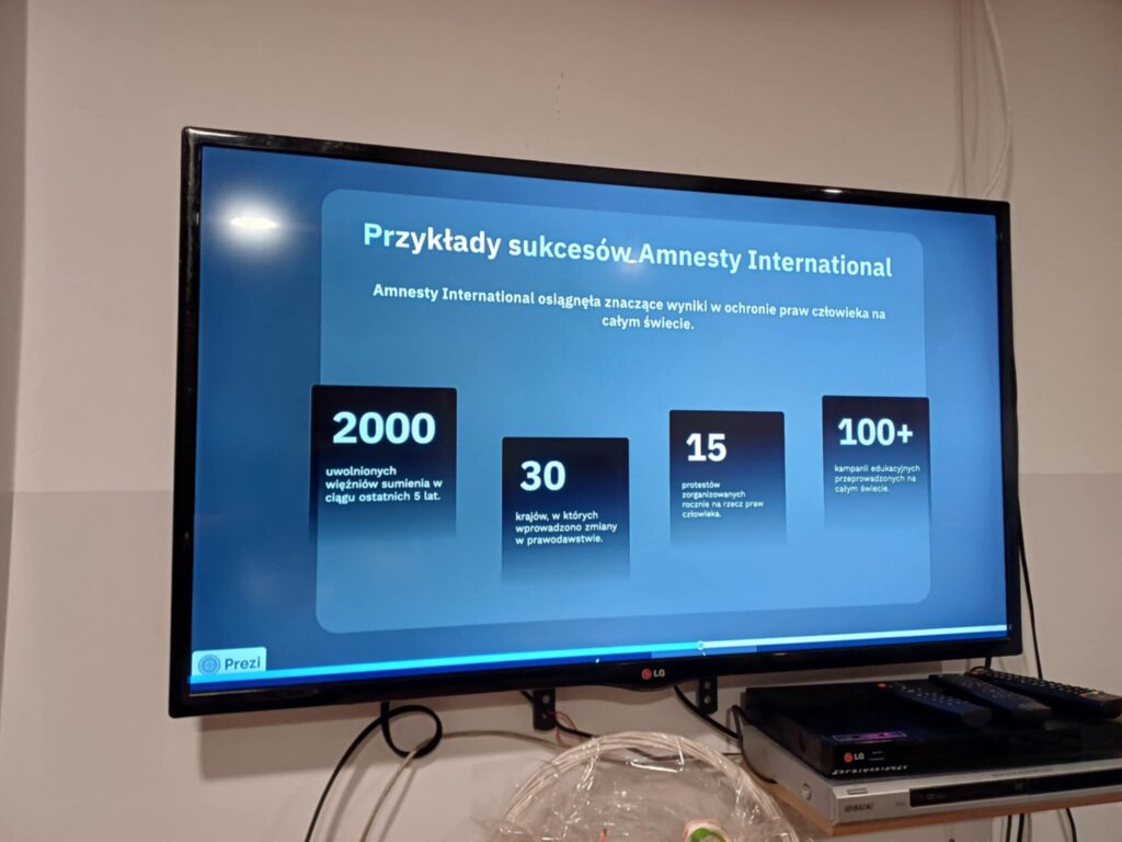 Pogadankę uświetniła prezentacja multimedialna a na korytarzu internatu zawisła gazetka na temat organizacji i osób, w których obronie można w tym roku pisać listy.