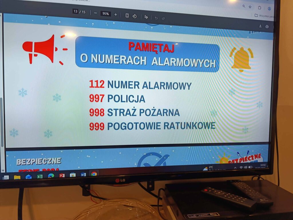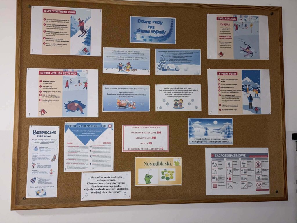 Zwrócono uwagę na konieczność korzystania ze sprawdzonego sprzętu podczas rekreacji oraz unikania zabaw w miejscach niebezpiecznych, np.: na zamarzniętych akwenach.