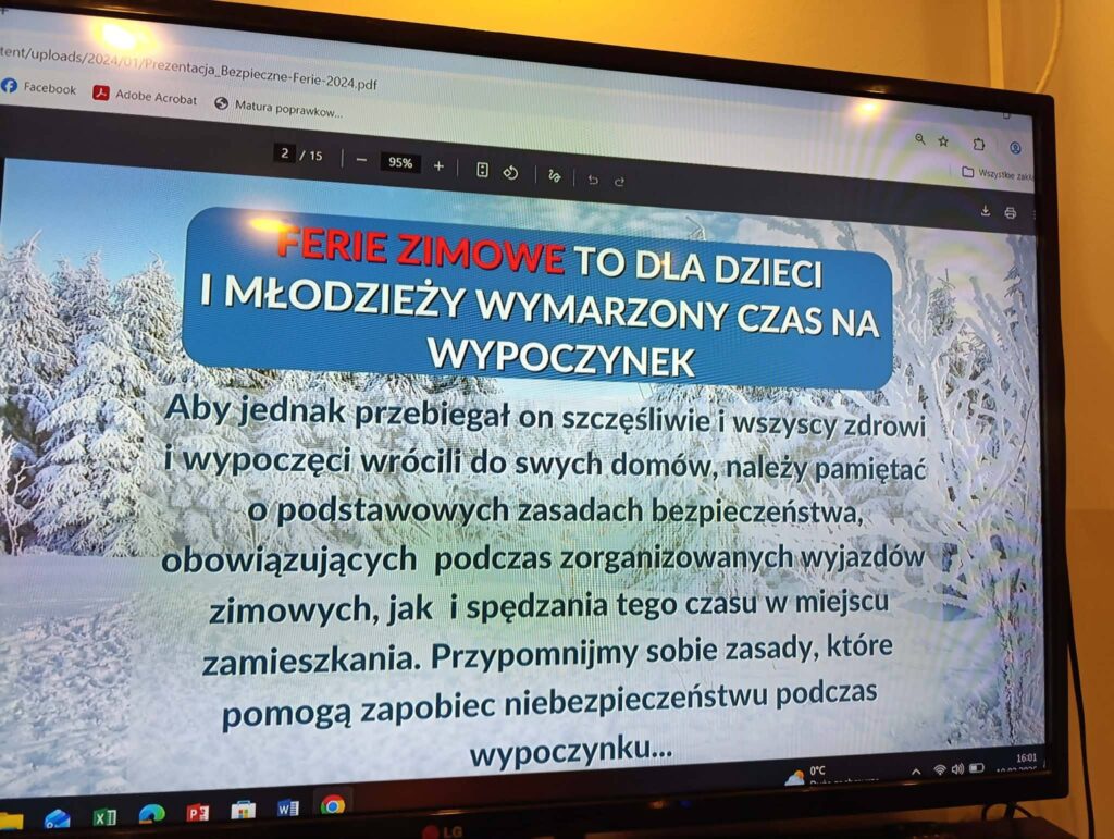 W dniu 10.02.2026 r. w internacie odbyła się pogadanka na temat bezpiecznego spędzania ferii zimowych.