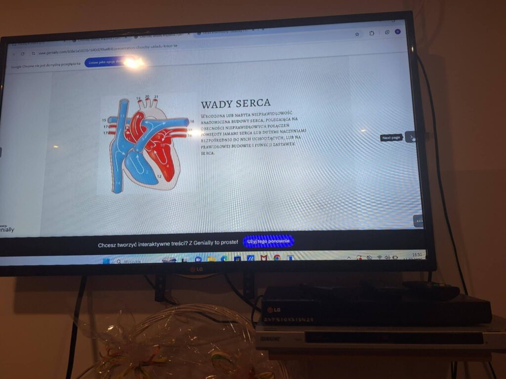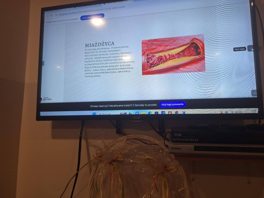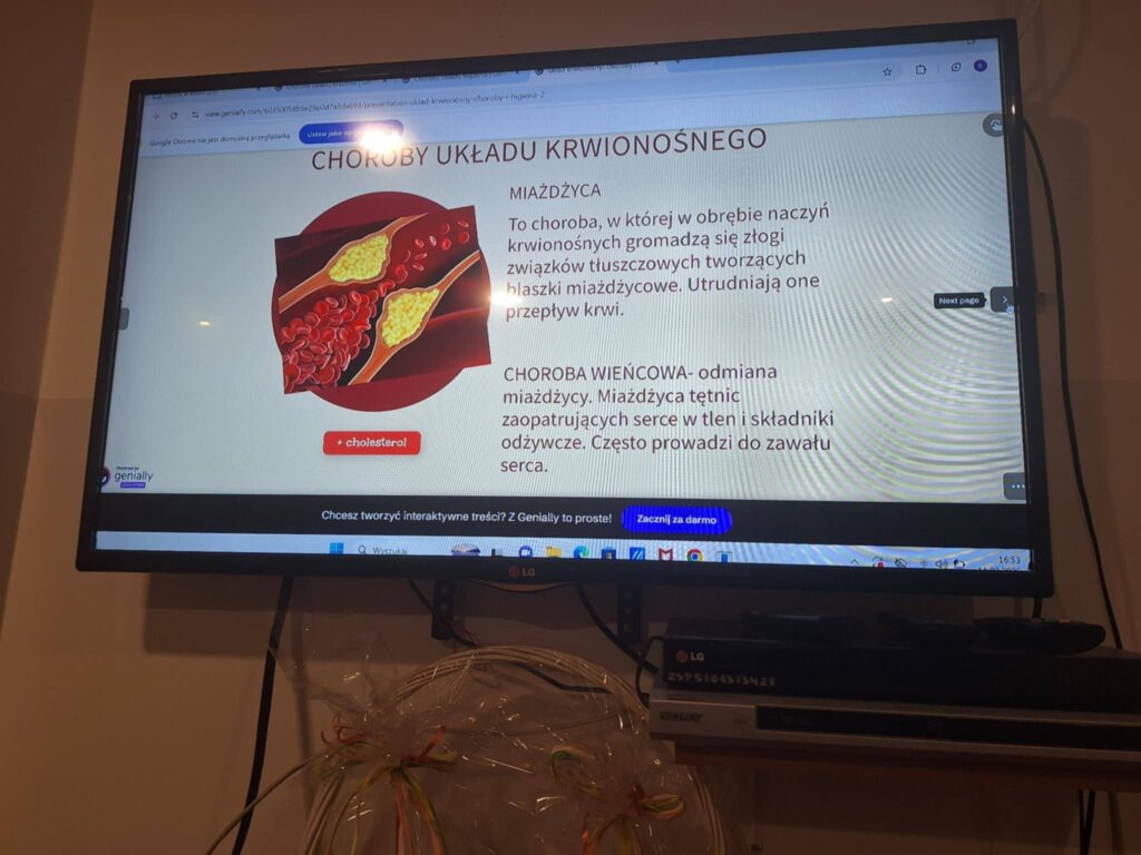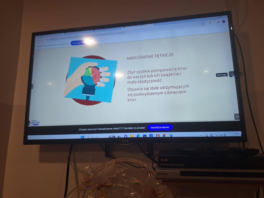 Pogadankę urozmaiciła prezentacja multimedialna, a na korytarzu internatu została przygotowana gazetka dotycząca chorób serca i układu krążenia.