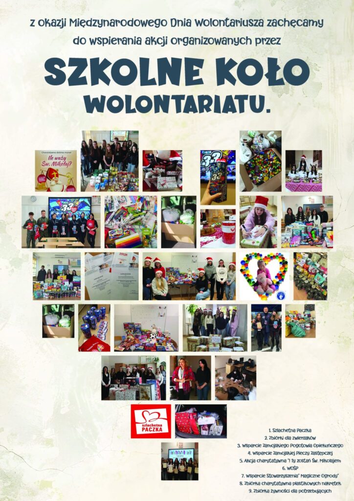 04.12.2025r. z okazji Międzynarodowego Dnia Wolontariusza, Samorząd Uczniowski, Szkolne Koło Caritas, Szkolne Koło Wolontariatu oraz Szkolne Koło PCK zorganizowali Cukierenkę charytatywną.