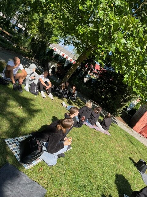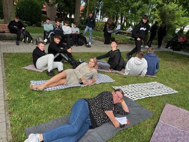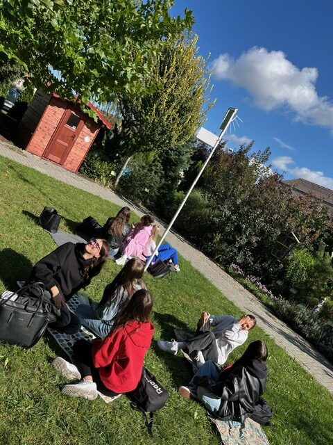 W ostatnich dniach września, korzystając z pięknej pogody, nasza szkoła zorganizowała wyjątkowe wydarzenie – Dzień gapienia się w niebo. Uczniowie i nauczyciele spotkali się na terenach zielonych, by wspólnie odpocząć, poobserwować niebo i na chwilę zwolnić tempo.