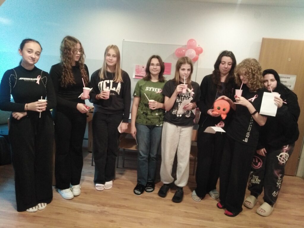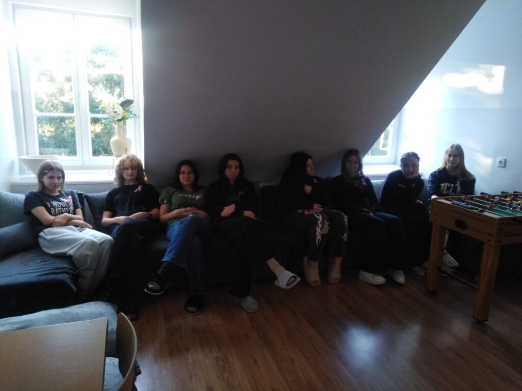 W dniu 15 października 2025 r. w internacie odbyła się pogadanka dla dziewcząt z klas pierwszych poświęcona obchodom Europejskiego Dnia Walki z Rakiem Piersi oraz przypadającemu na październik Różowemu Październikowi, czyli miesiącowi świadomości raka piersi.