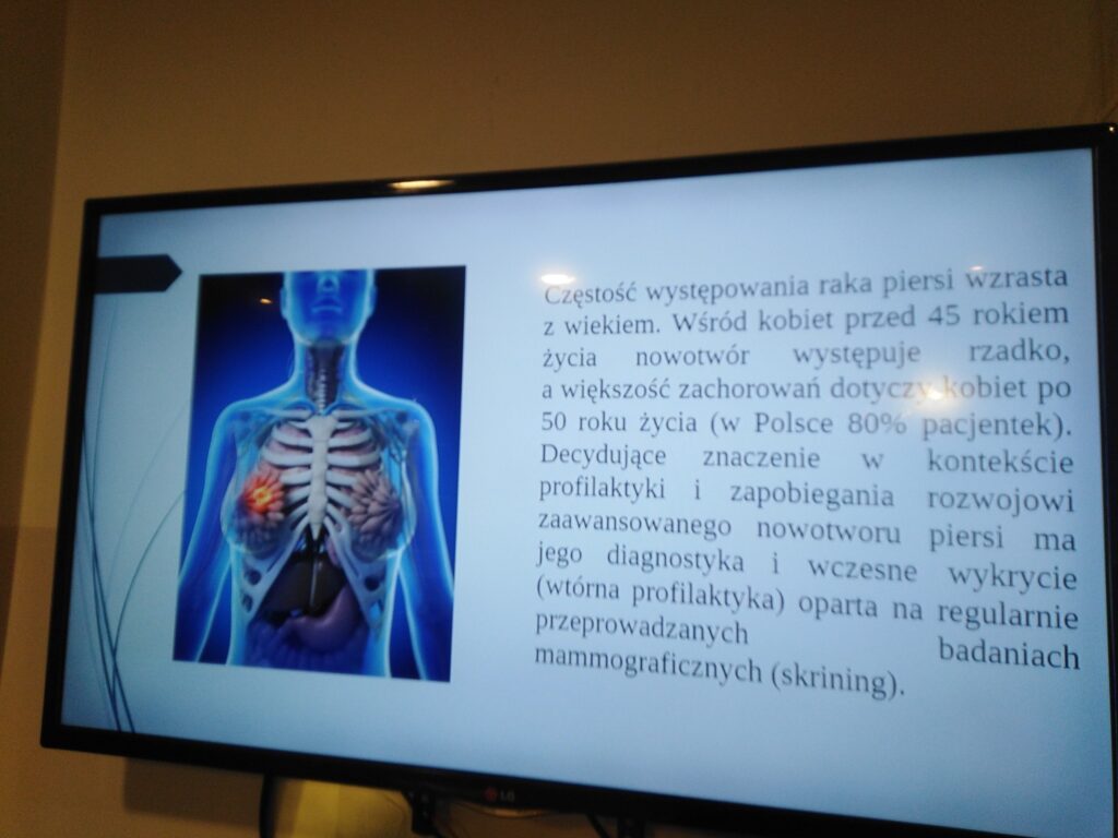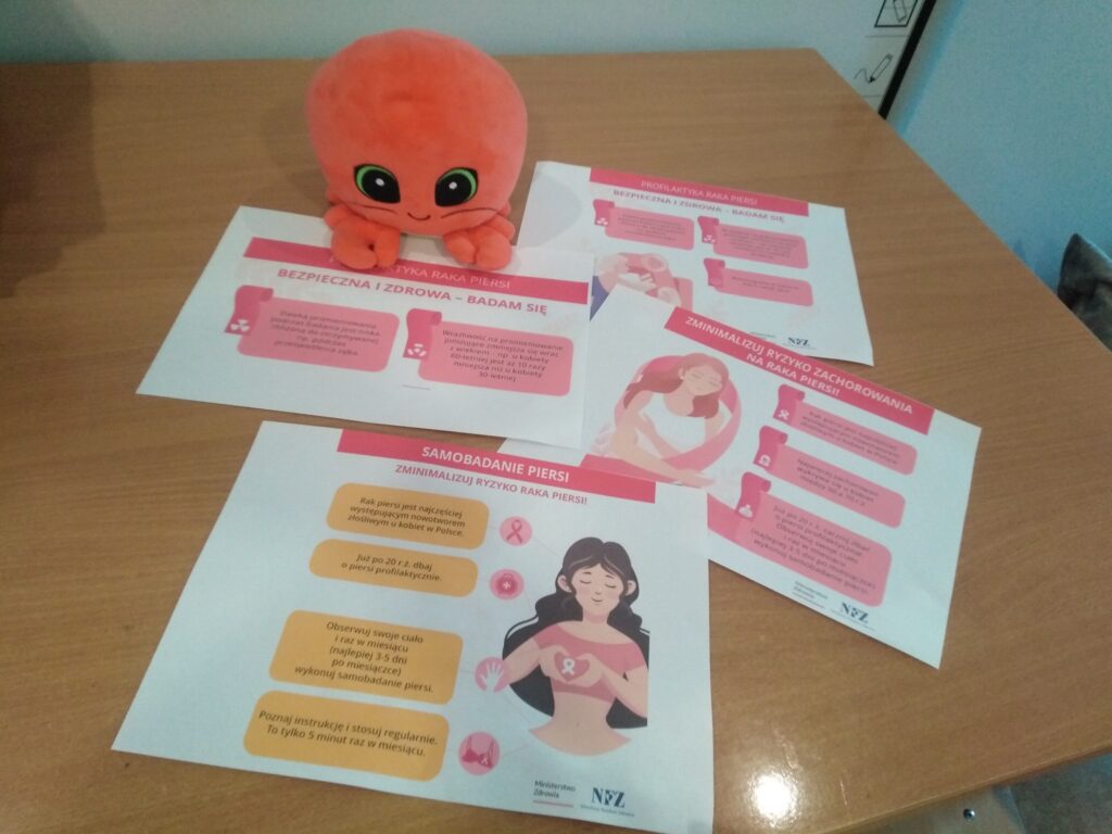 Prelekcję przeprowadziła wychowawczyni pani Monika Poździk, która przybliżyła wychowankom tematykę związaną z profilaktyką chorób nowotworowych, w szczególności raka piersi. Podczas spotkania omówiono aktualne statystyki zachorowań, znaczenie regularnych badań profilaktycznych, a także najczęstsze objawy choroby i możliwości leczenia. Pani Monika podkreśliła, jak ważna jest samoobserwacja oraz dbanie o zdrowie już od młodego wieku.