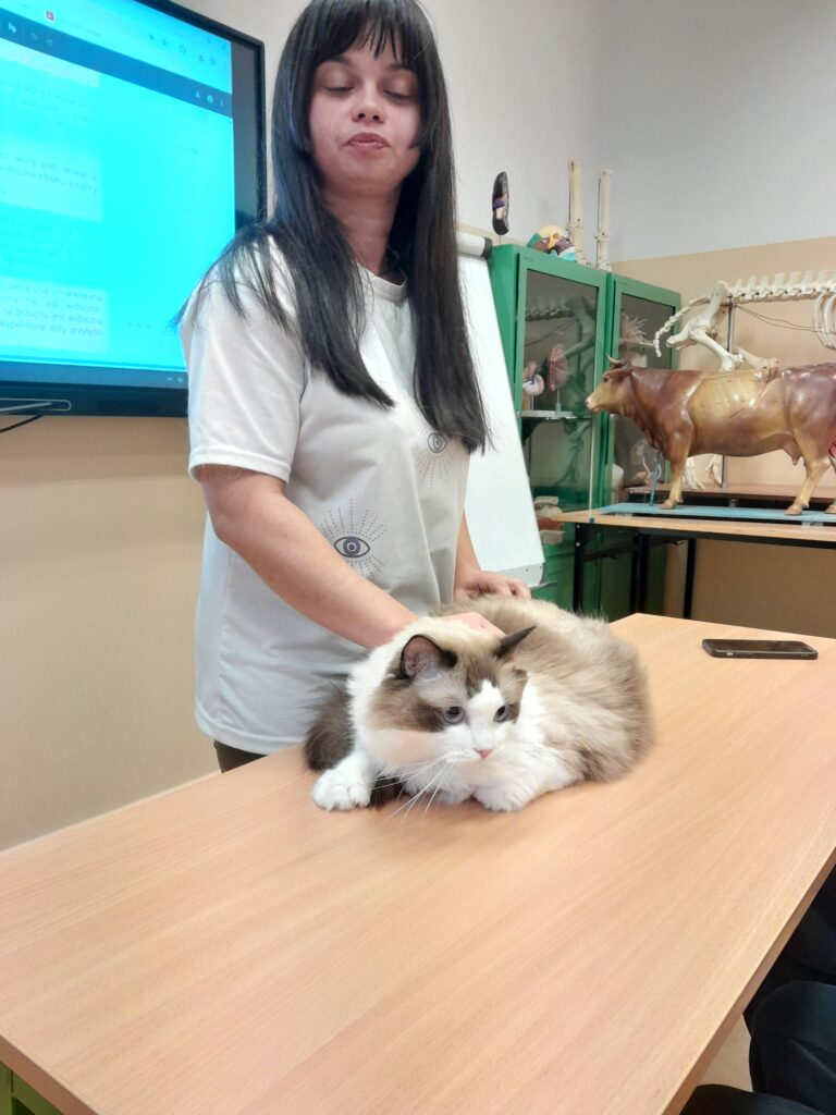 Podczas zajęć uczniowie dowiedzieli się, że nie każdy kot nadaje się do pracy terapeutycznej. Omówiono rasy szczególnie predysponowane do felinoterapii, a także cechy psychiczne i fizyczne, które powinno posiadać zwierzę pracujące z osobami chorymi – takie jak łagodny temperament, odporność na stres, potrzeba kontaktu z człowiekiem oraz dobra kondycja zdrowotna.
