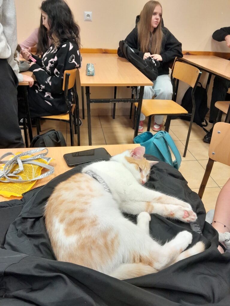 Wszystkim właścicielom oraz ich czworonożnym podopiecznym serdecznie dziękujemy za zaangażowanie, cierpliwość i ogrom futrzastej sympatii. Kto wie – być może właśnie wśród naszych szkolnych kotów rośnie przyszły terapeuta