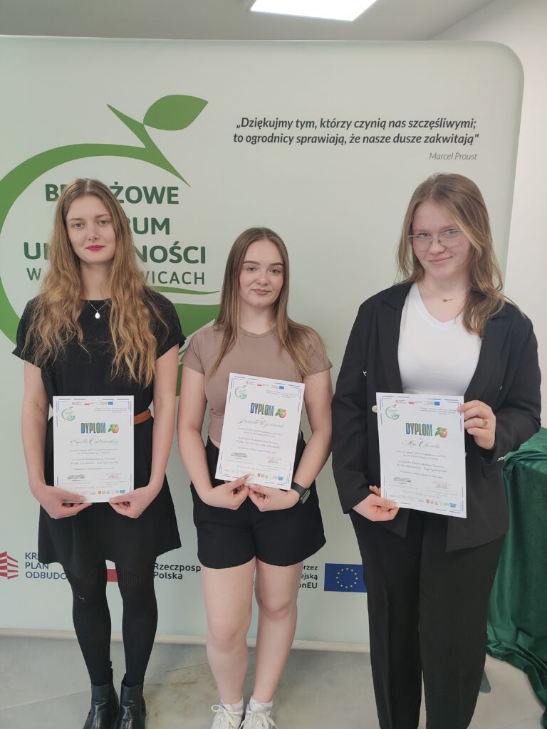 Finałowy etap składał się z części testowej oraz praktycznej, obejmującej zagadnienia z sadownictwa, warzywnictwa i kwiaciarstwa. Choć nasze uczennice kształcą się na kierunku architektura krajobrazu, a nie stricte ogrodnictwie, udowodniły, że pasja, wiedza i zaangażowanie nie mają granic 💪