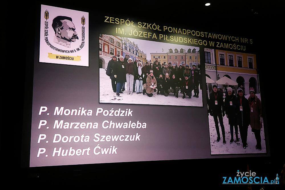 29 stycznia 2026 r., na zaproszenie pani Małgorzaty Farion – Prezes Stowarzyszenia Sympatyków Orszaku Trzech Króli – społeczność Zespołu Szkół Ponadpodstawowych Nr 5 im. Józefa Piłsudskiego w Zamościu uczestniczyła w XII edycji uroczystego podsumowania Zamojskiego Orszaku Trzech Króli.