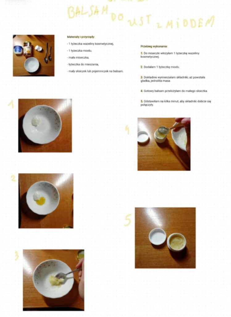 Uczennice biorące udział w zajęciach dowiedziały się, że w kosmetykach, które na co dzień używają występuje wiele grup związków chemicznych, które dzielą się na składniki bazowe (jak woda, gliceryna czy oleje), aktywne (np. witaminy, kwasy, ekstrakty o działaniu nawilżającym, regenerującym) oraz pomocnicze (takie jak konserwanty, emulgatory, barwniki i substancje zapachowe). Dziewczynki dowiedziały się również, jak świadomie wybierać produkty, które minimalizują negatywny wpływ na środowisko, poprzez stosowanie naturalnych składników, opakowań nadających się do recyklingu, wielokrotnego użytku lub kompostowania Następnie, samodzielnie przygotowały kosmetyki zgodnie z podstawowymi zasadami zero waste.