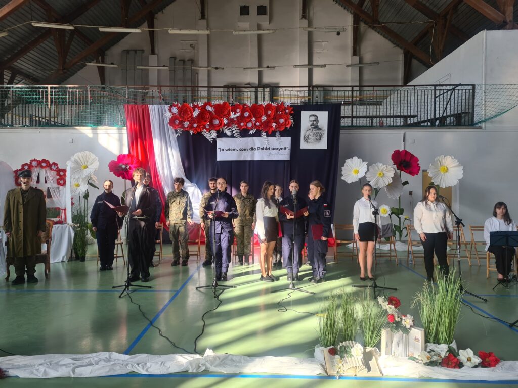 Imieniny patrona szkoły w Zespole Szkół Ponadpodstawowych Nr 5 im. Józefa Piłsudskiego w Zamościu obchodzono bardzo uroczyście. 19 marca 2026 r. o godz. 10.00 w hali gimnastycznej odbyła się patriotyczna akademia połączona ze ślubowaniem klas pierwszych. W szkolnej uroczystości uczestniczyli zaproszeni goście (m.in. przedstawiciele miasta, służb mundurowych, Związku Piłsudczyków Rzeczypospolitej Polskiej Towarzystwa Pamięci Józefa Piłsudskiego), uczniowie klas pierwszych i grono pedagogiczne.