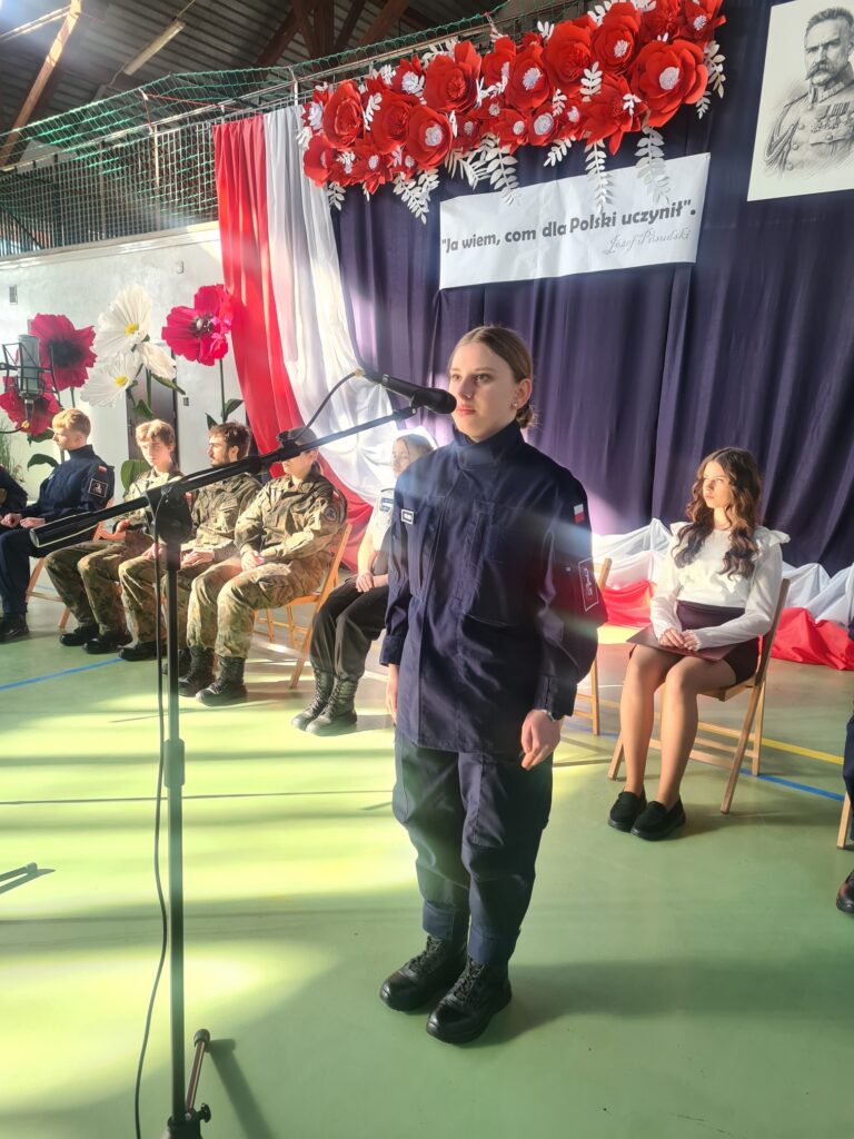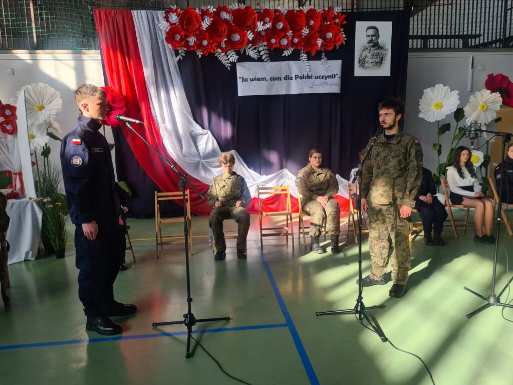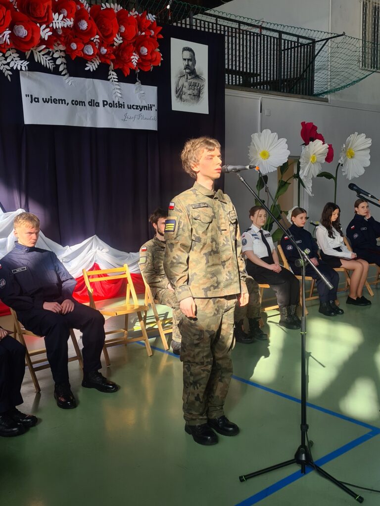 Kadeci klas mundurowych oraz zespół wokalno-instrumentalny wspólnie wystąpili w montażu słowno-muzycznym pt. „Ja wiem, com dla Polski uczynił”.