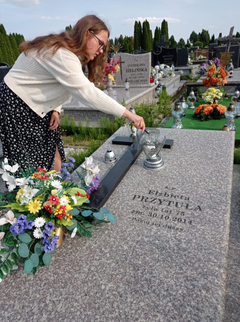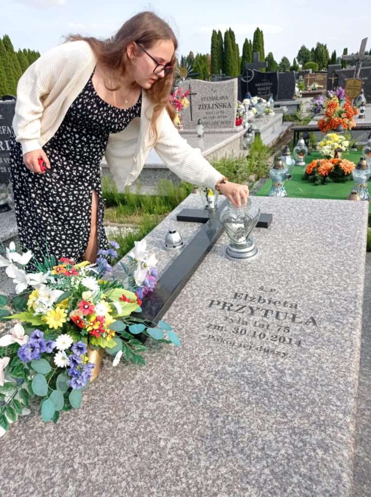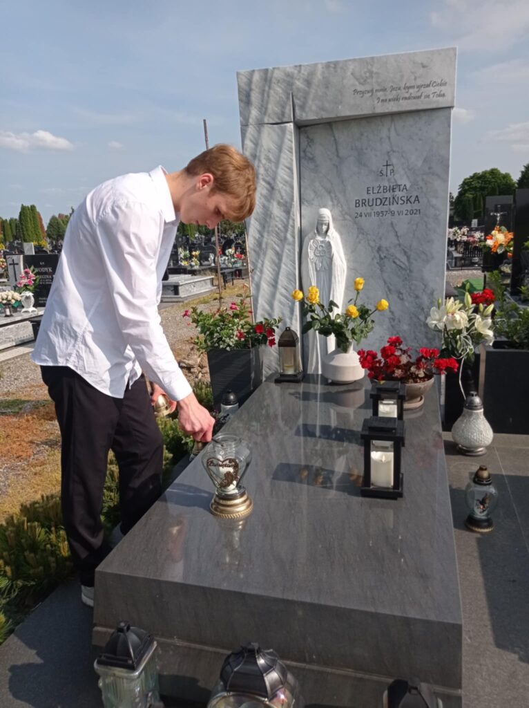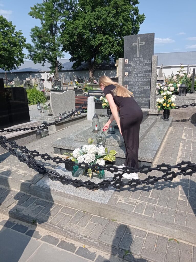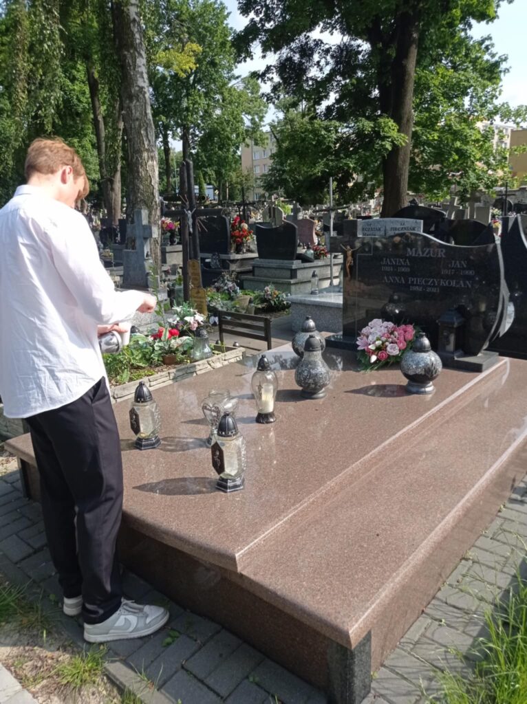 W dniu 10 czerwca 2025 r. delegacja wychowanków Internatu przy Zespole Szkół Ponadpodstawowych Nr 5 im. Józefa Piłsudskiego w Zamościu wraz z wychowawczyniami p. Moniką Poździk i p. Zuzanną Majdan, kontynuując rozpoczętą w sobotę „Drogę wspomnień”, udała się na Cmentarz Parafialny przy ul. Peowiaków oraz Cmentarz Komunalny na Karolówce, aby w roku jubileuszowym szkoły uczcić pamięć o zmarłych dyrektorach, nauczycielach, wychowawcy internatu oraz pracownikach szkoły. Podobnie jak w Jaśle na grobie pierwszego dyrektora szkoły Stefana Bauera, tak i tu w Zamościu zapalili znicze pamięci i minutą ciszy oraz modlitwą uczcili pamięć o zmarłych.