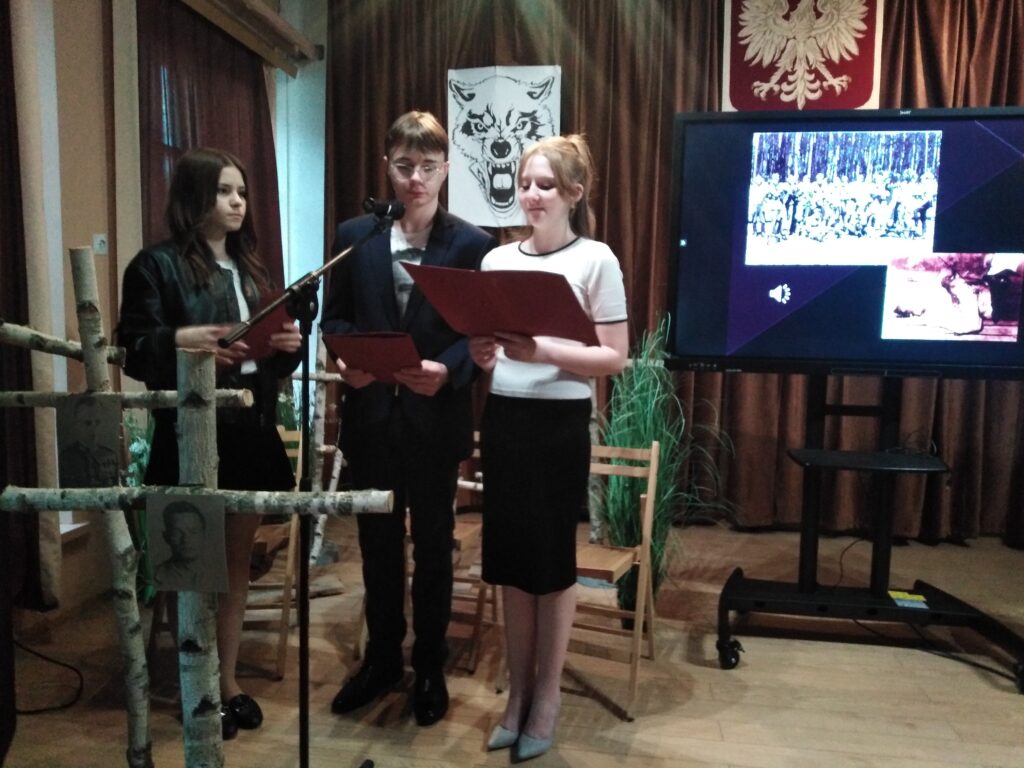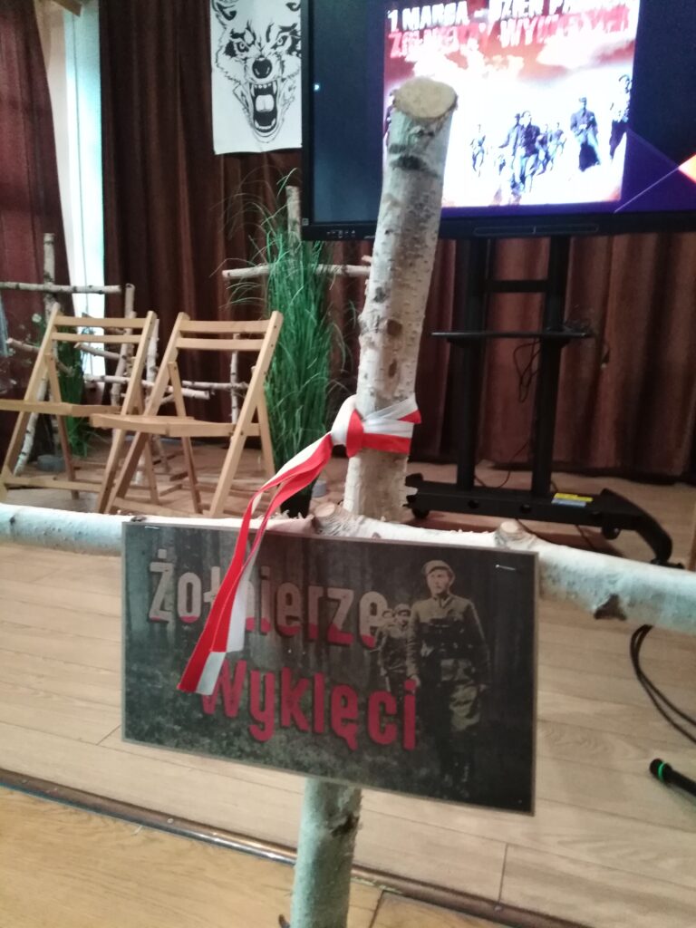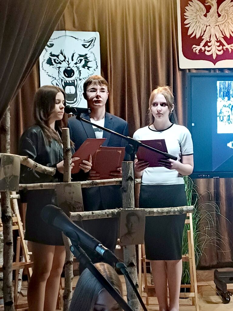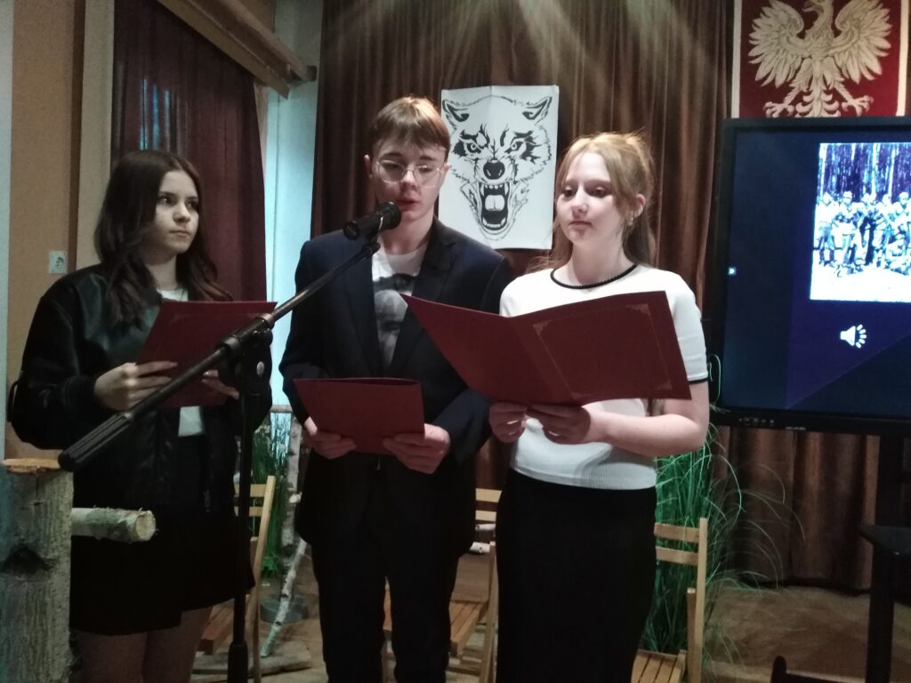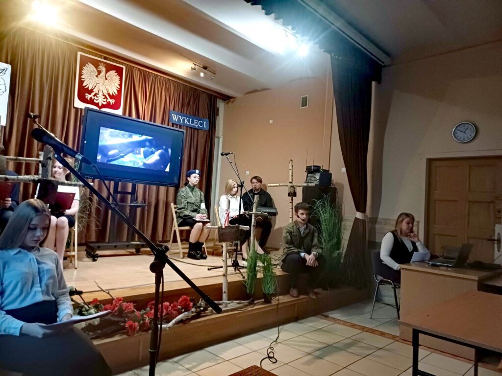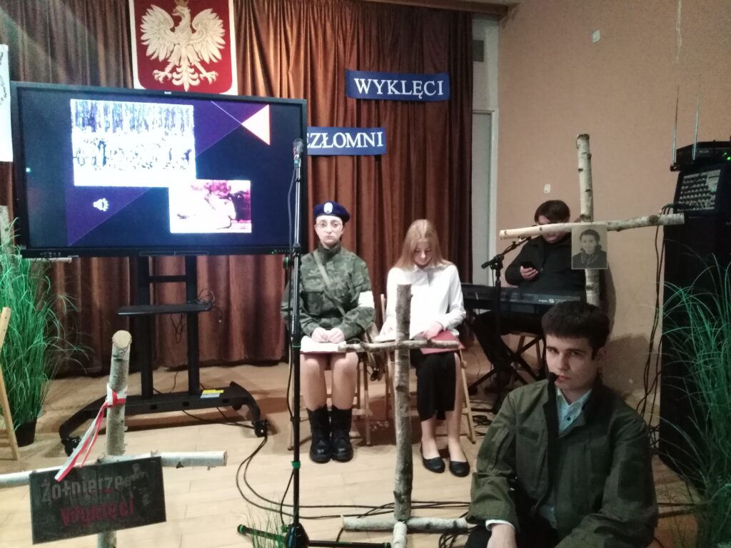 10 marca 2026 r. w szkolnej świetlicy odbyła się nietypowa lekcja historii. Zespół artystyczny z internatu pod kierunkiem p. Moniki Poździk (scenariusz, dekoracja, prezentacja multimedialna) oraz p. Mariusza Czochry (muzyka), zaprezentował montaż słowno-muzyczny poświęcony Żołnierzom Wyklętym w ramach obchodzonego 1 marca Narodowego Dnia Pamięci Żołnierzy Wyklętych.