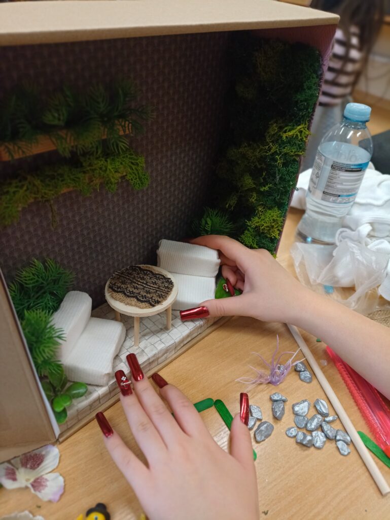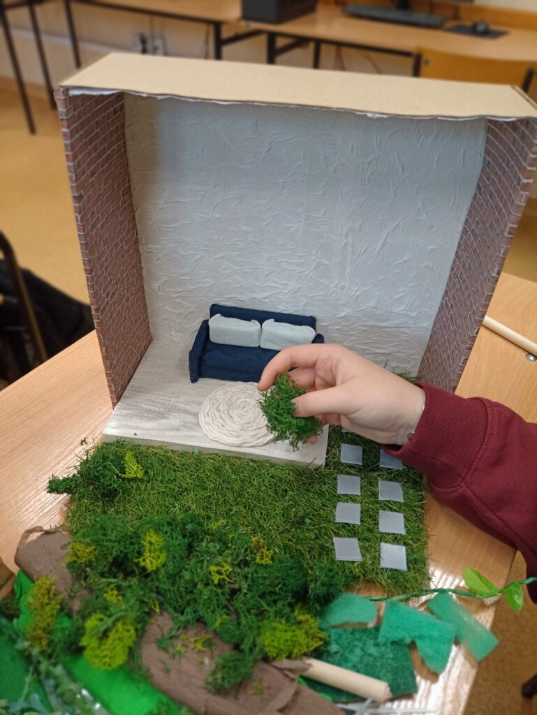 W listopadzie 2025r. uczniowie klasy 4TAR z zawodu technik architektury krajobrazu podczas lekcji z pracowni projektowania wykonywali swoje pierwsze makiety ogrodowych miejsc wypoczynku, z uwzględnieniem elementów małej architektury takich jak pergole, nawierzchnie i ławki.