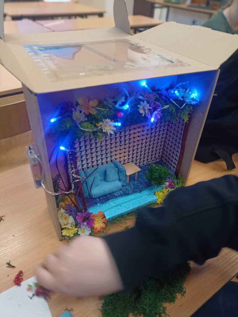 Kompozycje w przestrzeni pozwoliły na przećwiczenie umiejętności doboru barw i materiałów oraz zastosowaniu skali.
