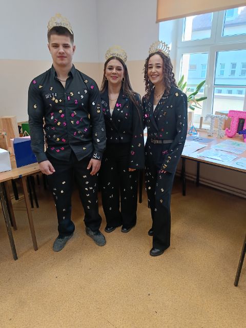 Duże zainteresowanie wzbudziła również inscenizacja z udziałem Króla i dwóch Królowych Nauki. Ich barwne stroje były nie tylko efektowne, ale także edukacyjne – zawierały opisy działań matematycznych, co w ciekawy sposób łączyło naukę z zabawą.