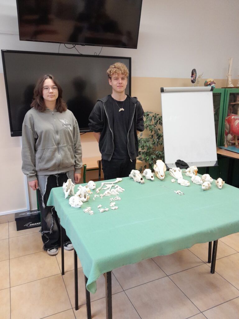 W naszej szkole kolejna osoba pasjonuje się preparowaniem i kolekcjonowaniem kości zwierząt. Jest to uczennica klasy 1TWZ (technik weterynarii) – Julia Adamska. Swoją pasją podzieliła się w klasą podczas lekcji anatomii zwierząt w praktyce. Towarzyszył jej Marcin Mnich uczeń klas 5TW, który już wielokrotnie prezentował kolekcję czaszek i swoją wiedzę na temat ich preparowania młodszym kolegom i koleżankom „po fachu”. A oto kilka słów od Julki na temat jej hobby.