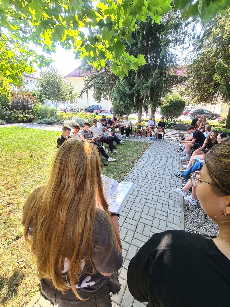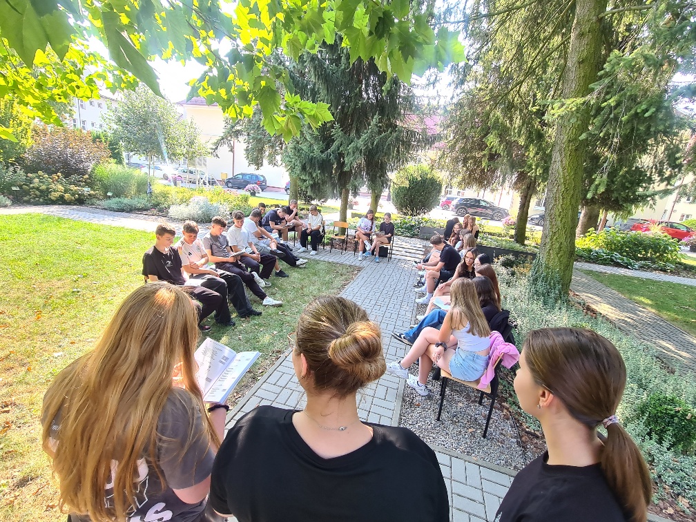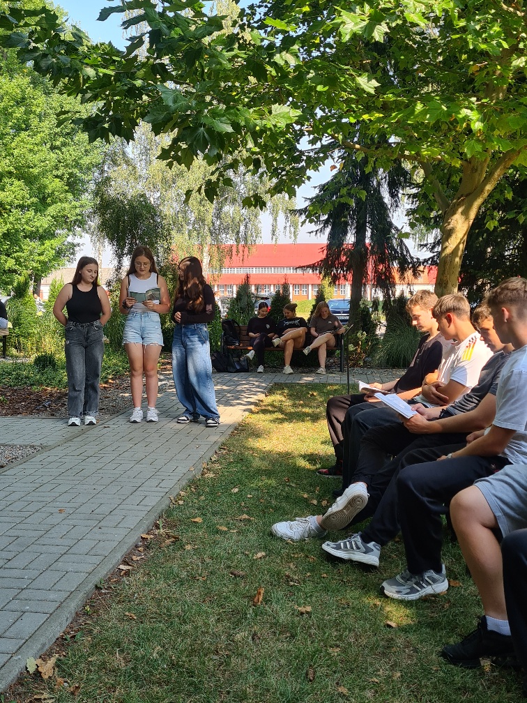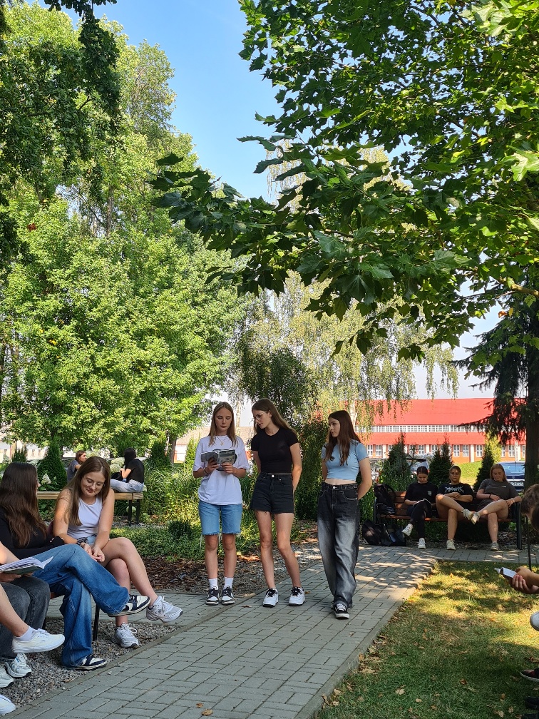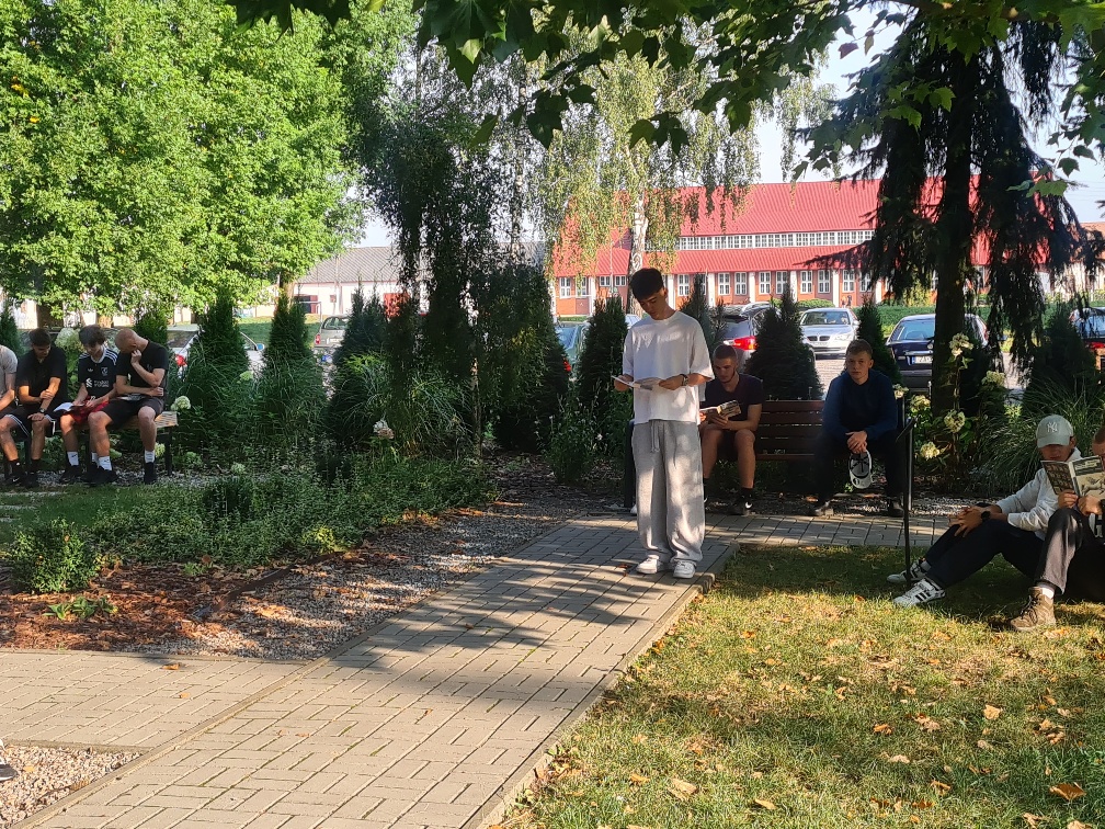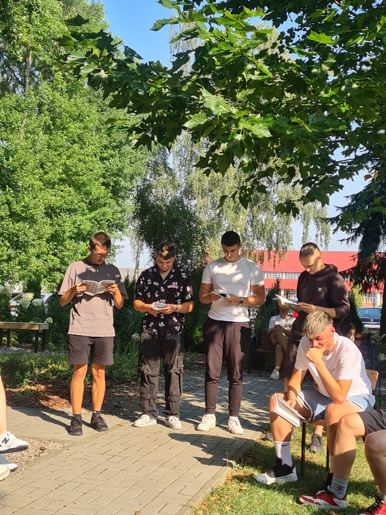 Szóstego i dziewiątego września 2025 r. kadeci klas mundurowych: 1 OPW, 4 OPW, 3 OPW, 3 LP oraz uczniowie klasy 5 TAZ (technik architektury krajobrazu i technik żywienia i usług gastronomicznych), 4 TZ (technik żywienia usług gastronomicznych), 2 TM (technik mechanizacji rolnictwa), 3 TAM (technik architektury krajobrazu i technik mechanizacji rolnictwa) i 2 TAM (technik architektury krajobrazu i technik mechanizacji rolnictwa), 1 TWZ (technik weterynarii i technik żywienia i usług gastronomicznych) Zespołu Szkół Ponadpodstawowych Nr 5 w Zamościu im. Józefa Piłsudskiego wcielili się w bohaterów lirycznych twórczości Jana Kochanowskiego. Uczniowie pod opieką polonistek: Anety Słupczyńskiej, Marzeny Chwaleby, Renaty Dąbrowskiej oraz bibliotekarki Natalii Kraczek w scenerii przyrody czytali teksty liryczne poety renesansu czternastej edycji ogólnopolskiej akcji Narodowego Czytania 2025.