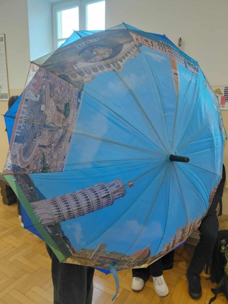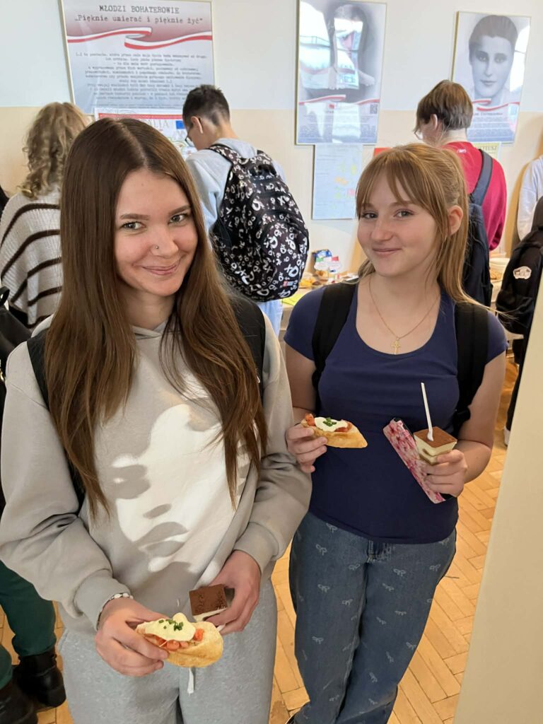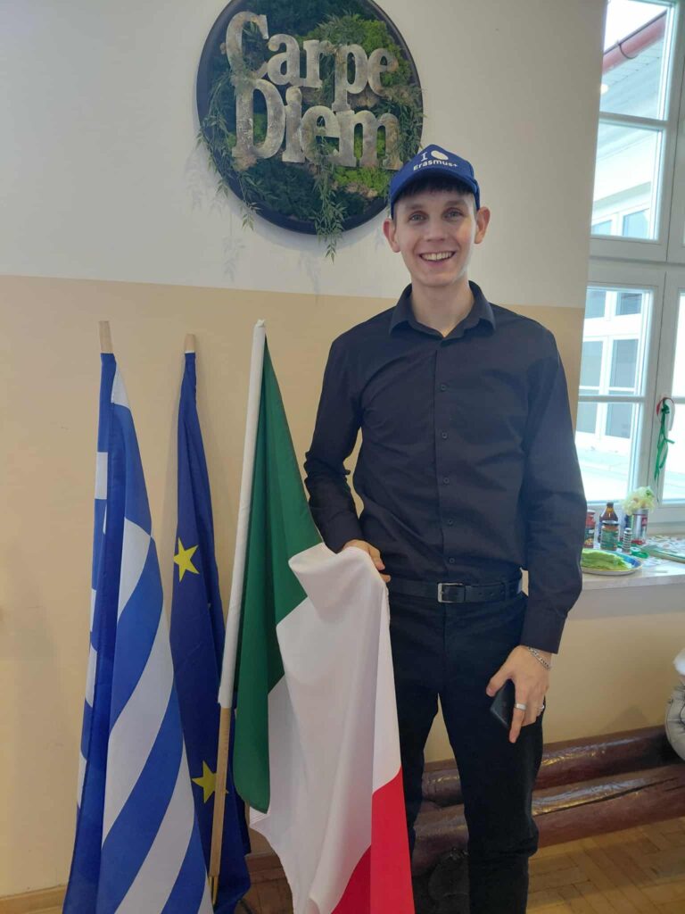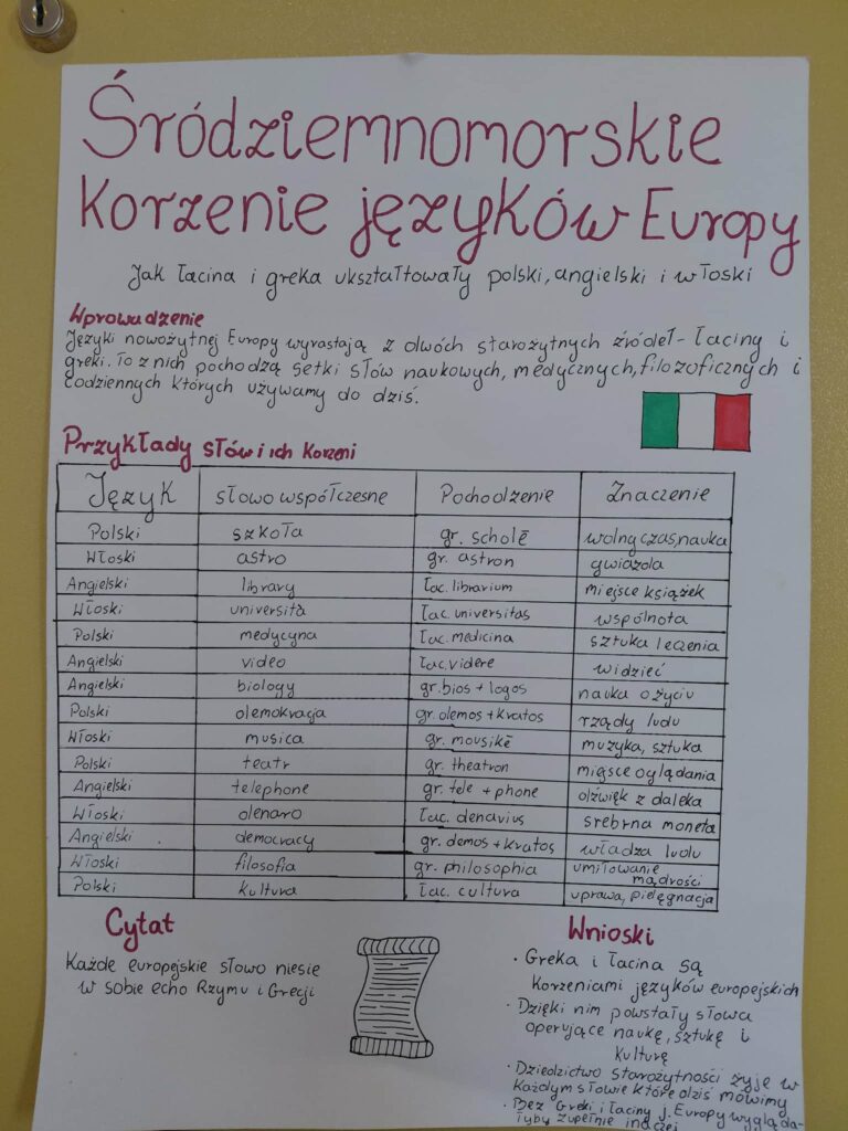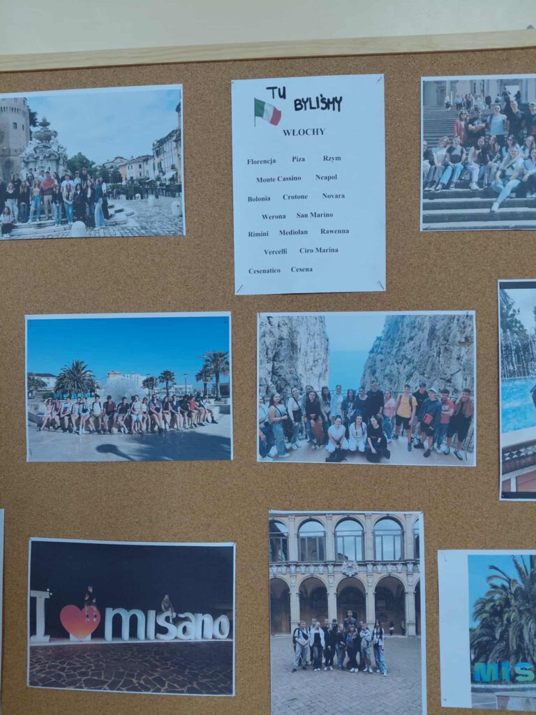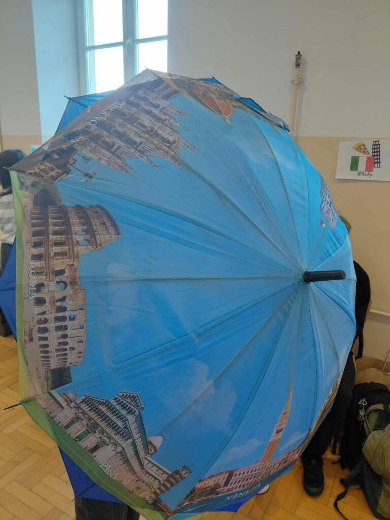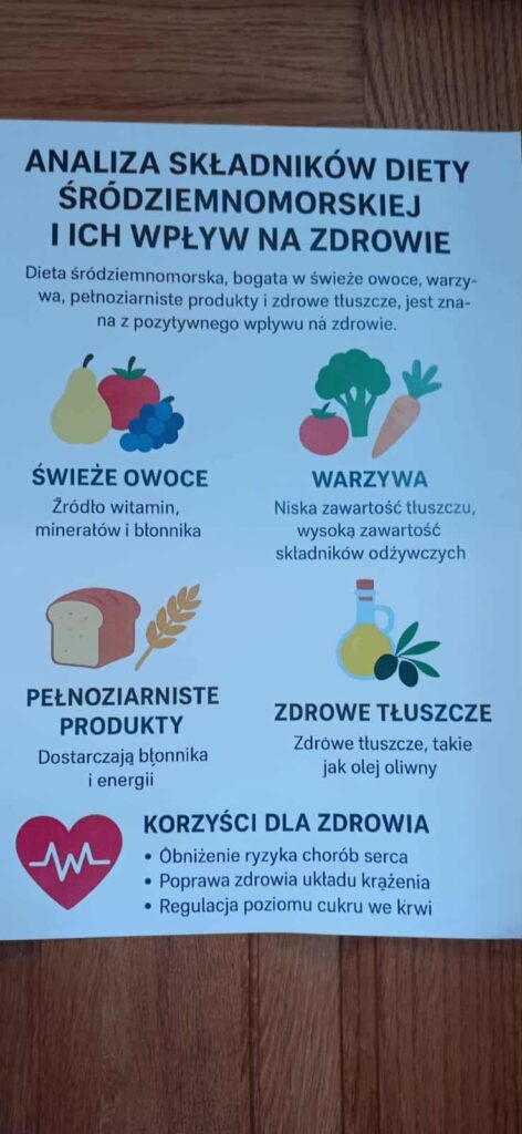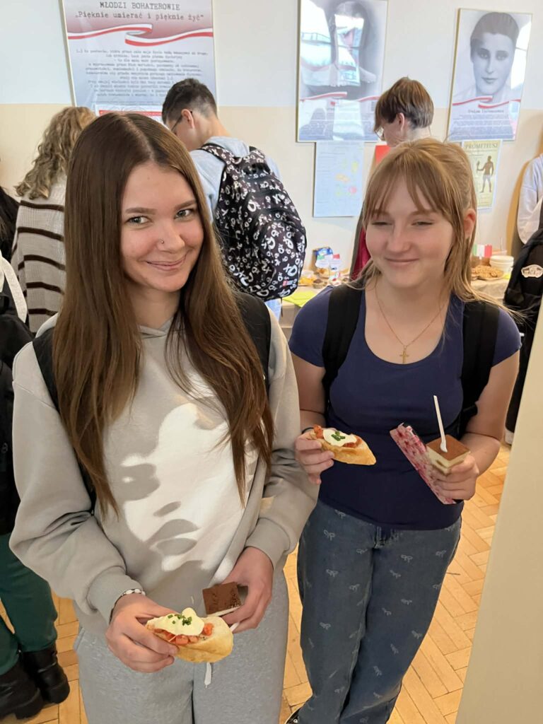 Młodzież przygotowała wyjątkowe specjały kuchni włoskiej, które cieszyły się dużym zainteresowaniem wśród odwiedzających. Na korytarzu można było również zobaczyć wystawę produktów charakterystycznych dla kuchni greckiej i włoskiej, co pozwoliło uczestnikom lepiej poznać smaki i kulturę krajów śródziemnomorskich. Nie zabrakło również wystawy prac uczniowskich inspirowanych tematyką europejską i międzykulturową. Na dolnym korytarzu przygotowano prezentacje poświęcone kulturze i historii regionu Morza Śródziemnego. Uczniowie przedstawili ciekawostki, tradycje oraz najważniejsze wydarzenia związane z tym obszarem, ukazując jego różnorodność i bogactwo. Wydarzenie stanowiło doskonałą okazję do promowania idei mobilności młodzieży, poszerzania wiedzy o innych krajach oraz budowania postawy otwartości na różne kultury — wartości, które od lat są ważnym elementem programu Erasmus+.