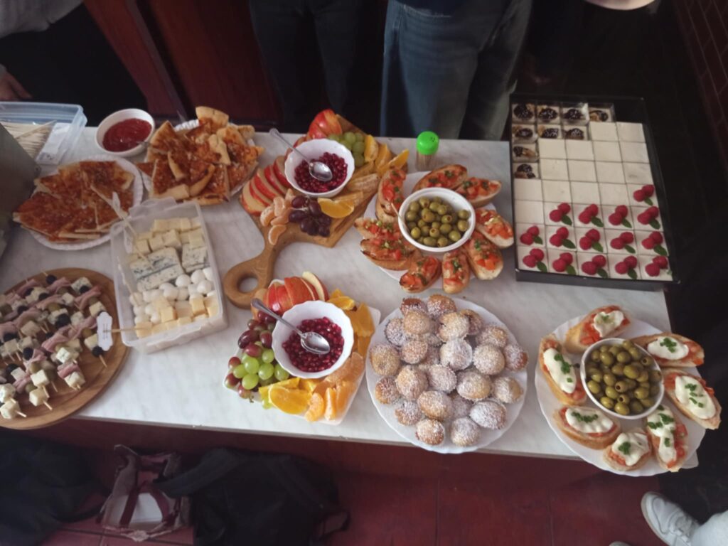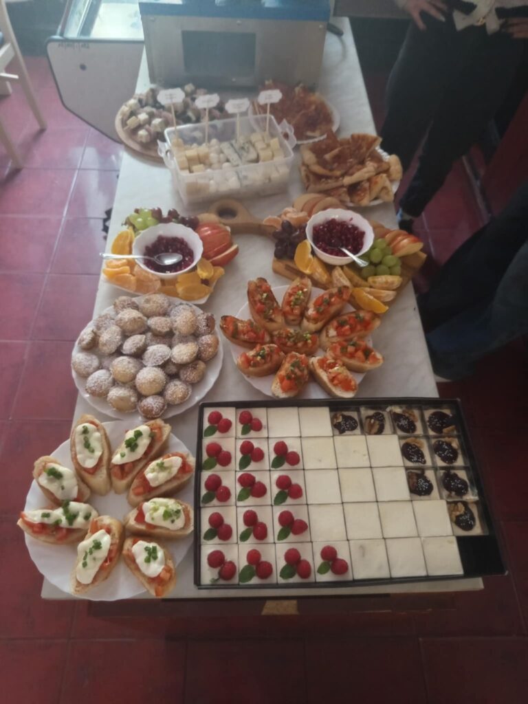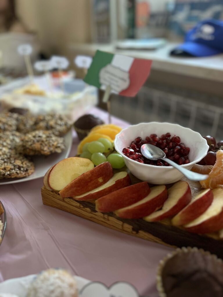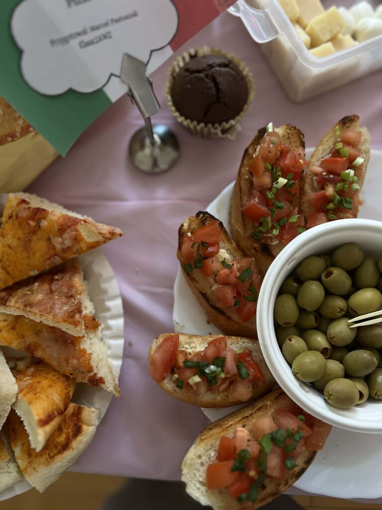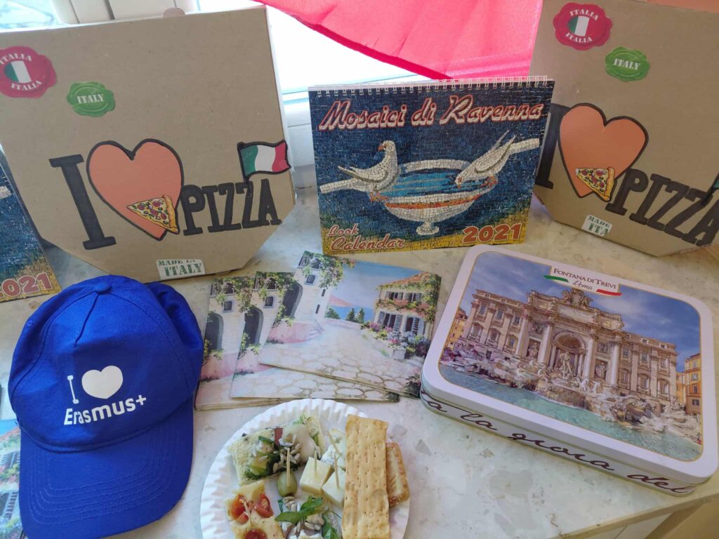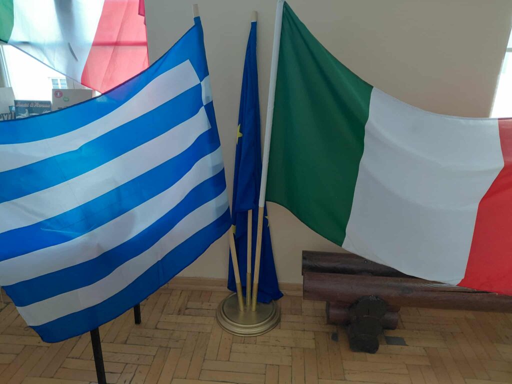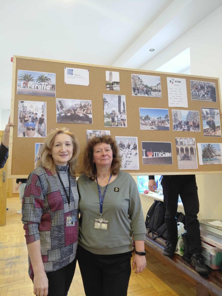 Młodzież przygotowała wyjątkowe specjały kuchni włoskiej, które cieszyły się dużym zainteresowaniem wśród odwiedzających. Na korytarzu można było również zobaczyć wystawę produktów charakterystycznych dla kuchni greckiej i włoskiej, co pozwoliło uczestnikom lepiej poznać smaki i kulturę krajów śródziemnomorskich. Nie zabrakło również wystawy prac uczniowskich inspirowanych tematyką europejską i międzykulturową. Na dolnym korytarzu przygotowano prezentacje poświęcone kulturze i historii regionu Morza Śródziemnego. Uczniowie przedstawili ciekawostki, tradycje oraz najważniejsze wydarzenia związane z tym obszarem, ukazując jego różnorodność i bogactwo. Wydarzenie stanowiło doskonałą okazję do promowania idei mobilności młodzieży, poszerzania wiedzy o innych krajach oraz budowania postawy otwartości na różne kultury — wartości, które od lat są ważnym elementem programu Erasmus+.