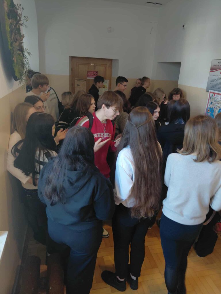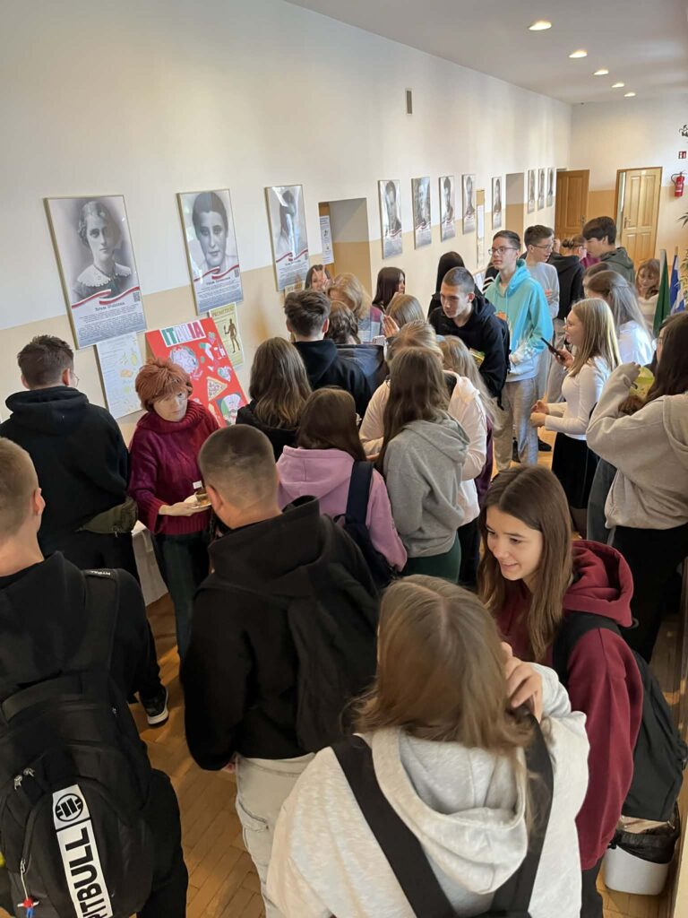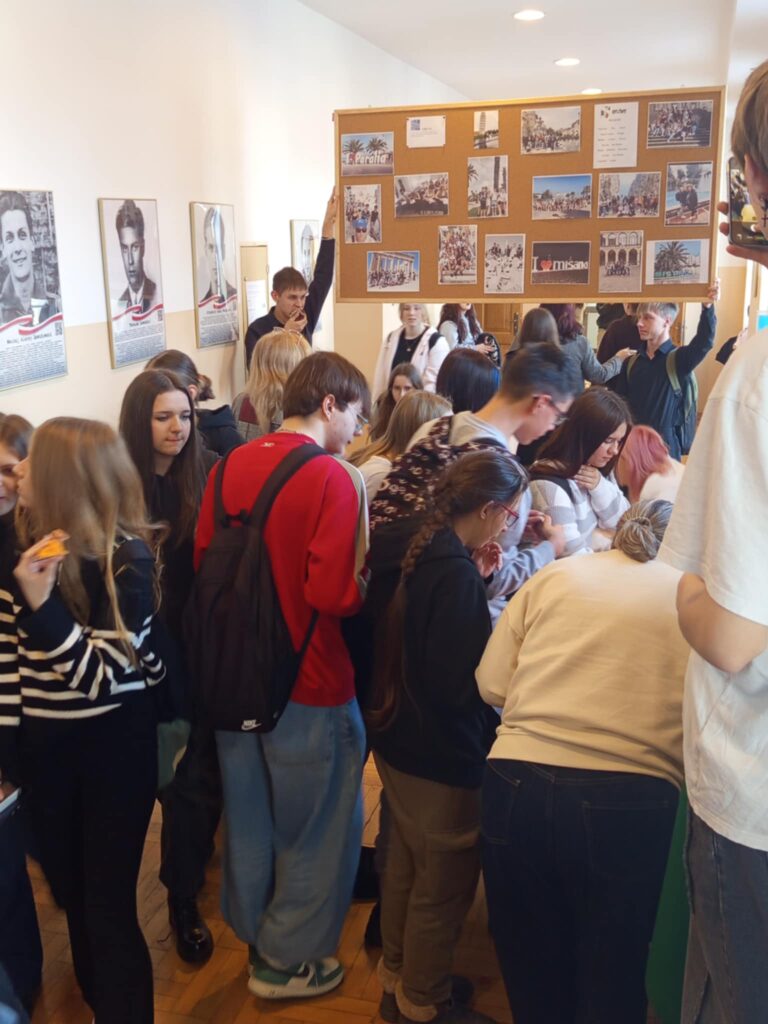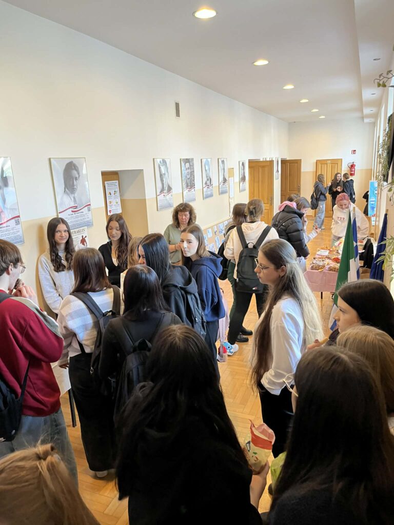 Wydarzenie zostało zorganizowane na górnym korytarzu przy sali 54, gdzie uczniowie zaprezentowali efekty swojej pracy oraz podzielili się swoimi doświadczeniami związanymi z projektem Erasmus+.