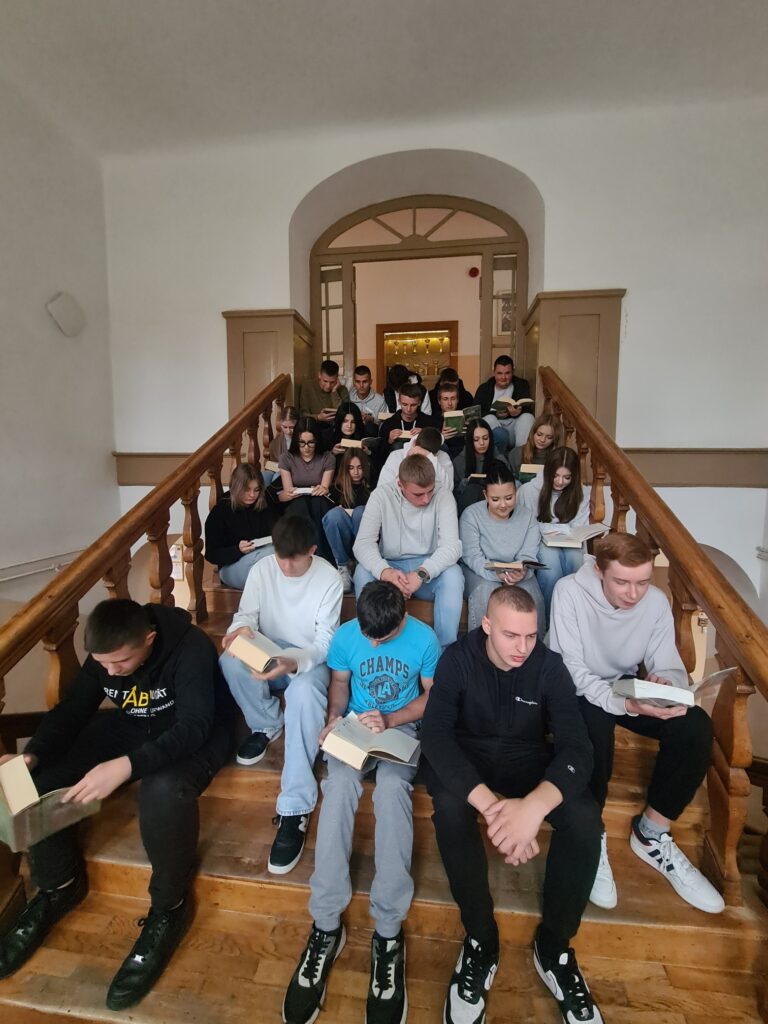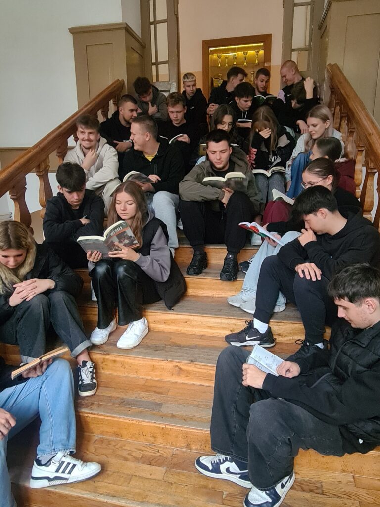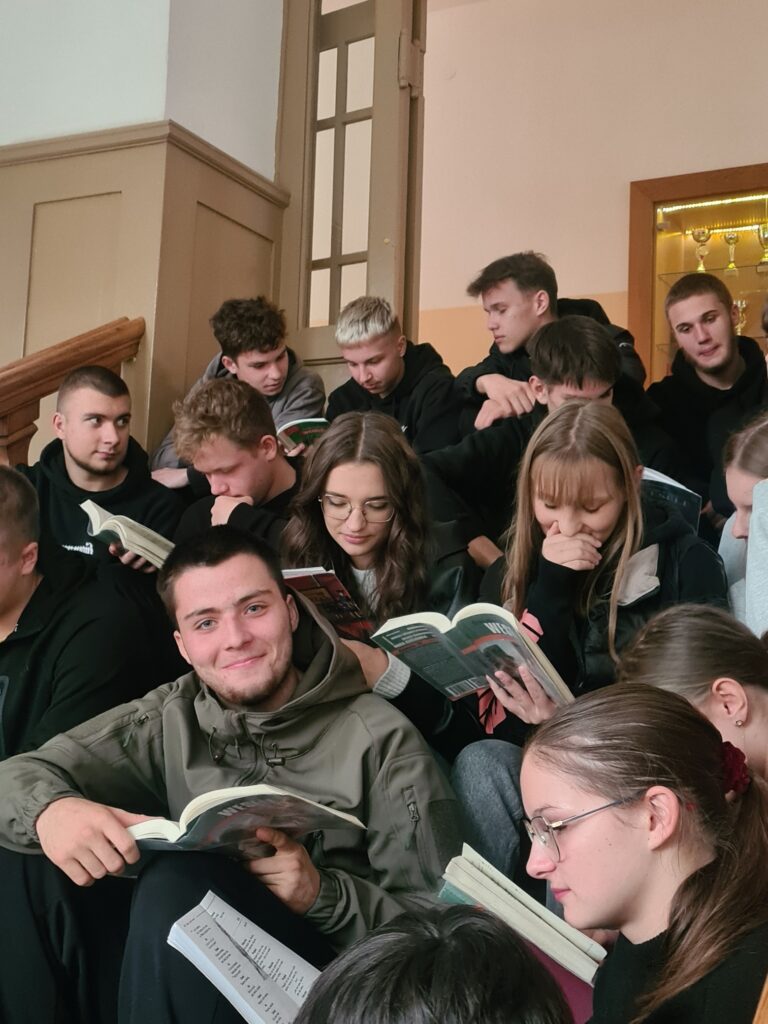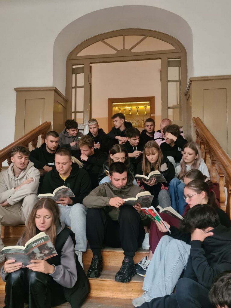 Na drewnianych stuletnich schodach „Rolniczaka” młodzież klas: 4 OPW (Oddział Przygotowania Wojskowego) oraz 3 TAM (technik architektury krajobrazu oraz technik mechanizacji rolnictwa i agrotroniki) czytała na głos „Chłopów” W. S. Reymonta oraz „Wesele” S. Wyspiańskiego. Czytanie tekstów urozmaicono wiadomościami na temat lektur.