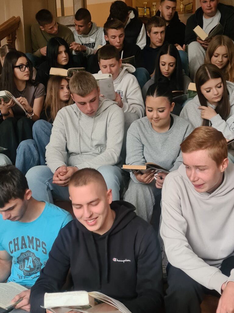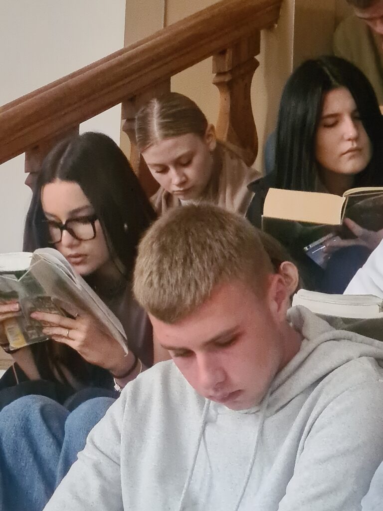 W bieżącym roku szkolnym 29.09.2025 przypadł Ogólnopolski Dzień Głośnego Czytania. W związku z tym wydarzeniem młodzież naszej szkoły włączyła się w akcję głośnego czytania tekstów młodopolskich.