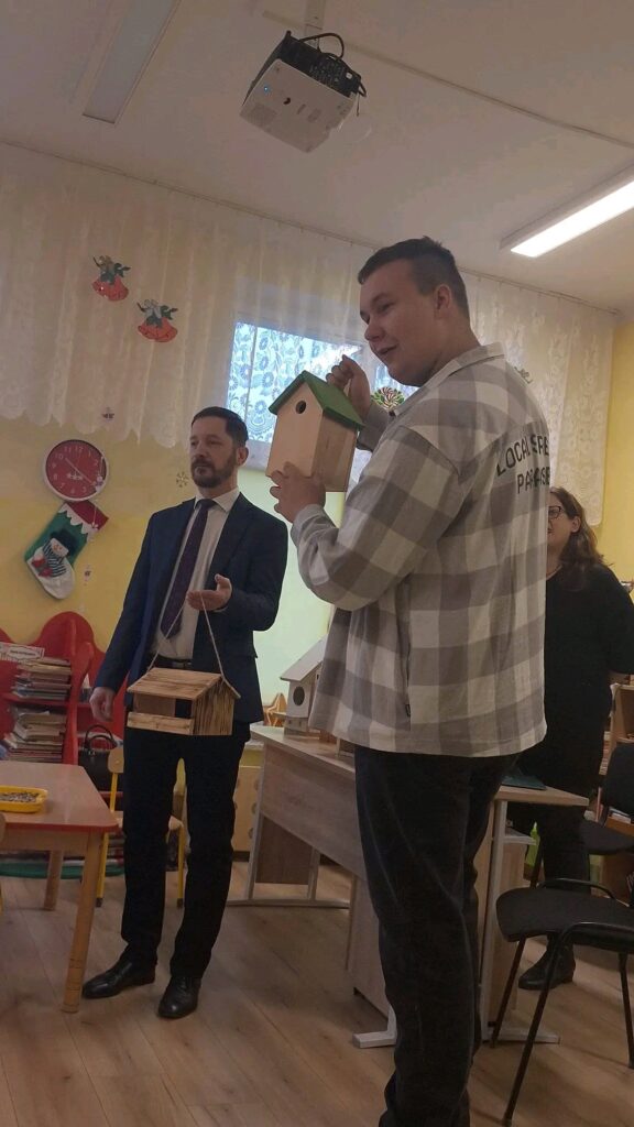 Karmniki, budki , nasiona zostały przekazane trzem zamojskim przedszkolom nr 4 , 12 i 13. W nich też nasi uczniowie (klas 1TWZ, 3 TW , 3TM i 4TM) przeprowadzili zajęcia edukacyjne – „Polskie ptaki” i „Jak zwierzęta pomagają ludziom”, do których samodzielnie przygotowali materiały edukacyjne.