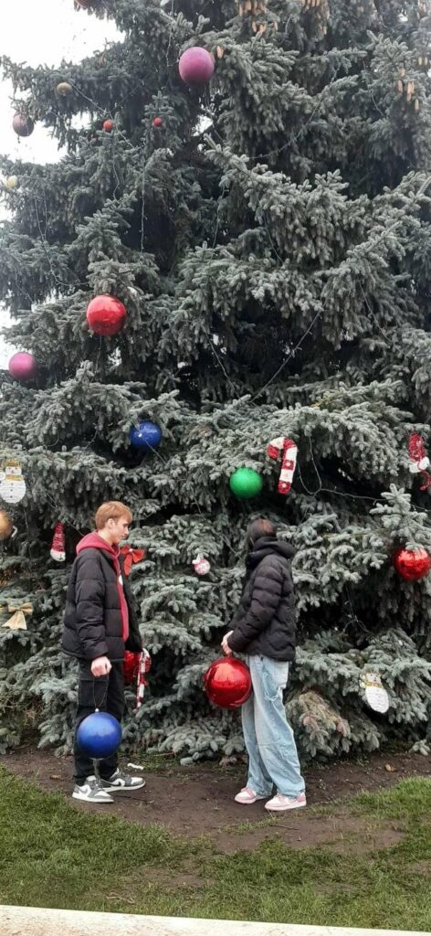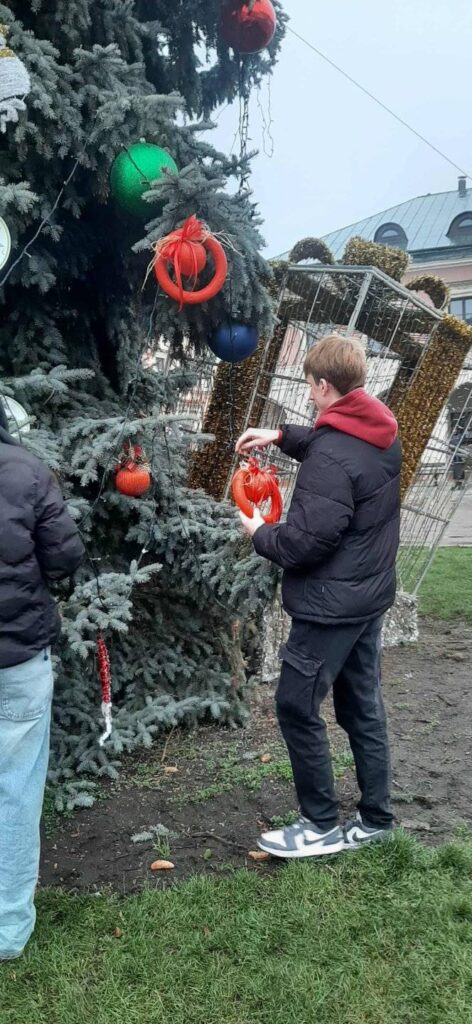Nasi podopieczni przyozdobili choinkę własnoręcznie wykonanymi dekoracjami, które wniosły wyjątkowy, osobisty charakter do miejskiego drzewka.