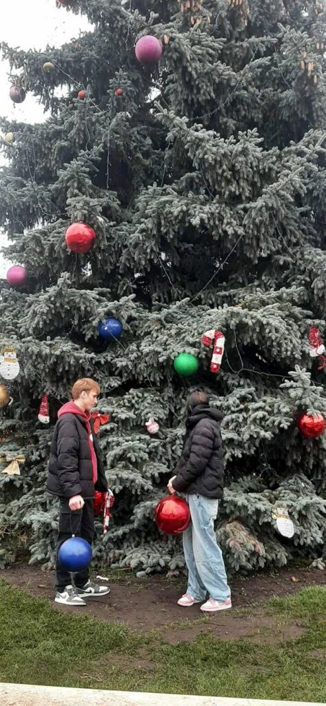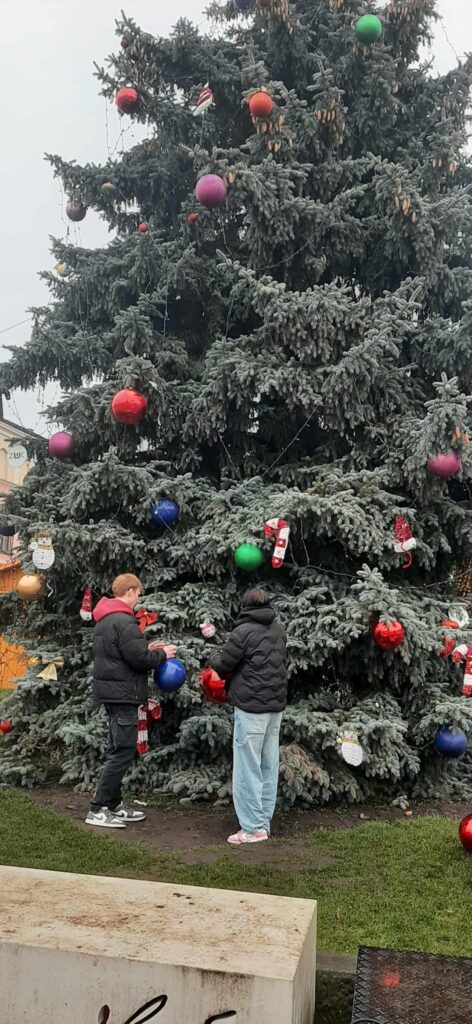 W ramach akcji „Razem na Święta w Zamościu” na Rynku Wielkim odbyło się wspólne dekorowanie świątecznej choinki. Uczestniczyli w tym uczniowie naszej szkoły, którzy ozdabiali drzewko własnoręcznie wykonanymi ozdobami. Ozdoby wymyśliła Pani Olga Gontarz, konstrukcję koordynował Pan Jakub Zdybel, a wykończenie pani Renata Terlecka. Natomiast największą pracę włożyli w nie uczniowie technikum architektury krajobrazu, głównie klasa 2ga i 4ta.