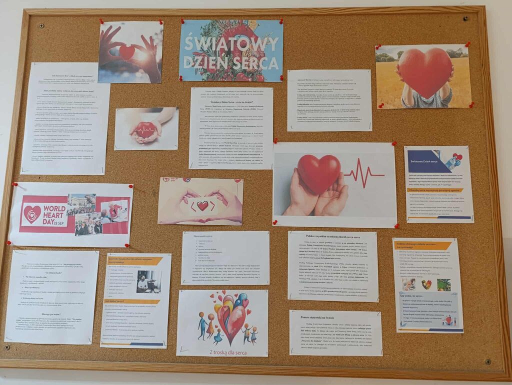 Z tej okazji wykonano również gazetkę tematyczną zawierającą najważniejsze informacje dotyczące dbania o serce, znaczenia aktywności fizycznej, prawidłowego odżywiania oraz unikania używek.