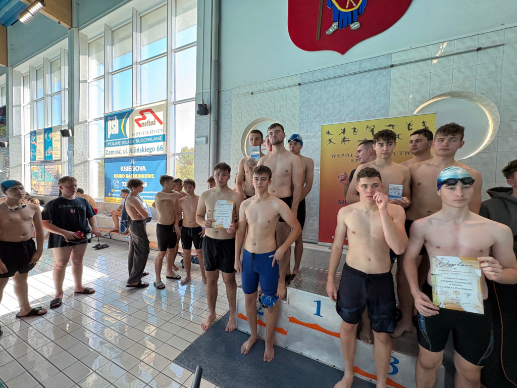 21 października 2025 roku na krytej pływalni w Zamościu odbyła się miejska licealiada w pływaniu. Z dumą informujemy, że nasza sztafeta spisała się znakomicie, zajmując drugie miejsce w klasyfikacji miejskiej i uzyskując awans na zawody rejonowe!
