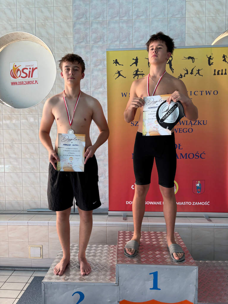 Indywidualne kwalifikacje na licealiadzie zdobyli również Adamczyk Adam Antoni (50 m stylem dowolnym) oraz Kopciowski Karol (50 m stylem dowolnym).