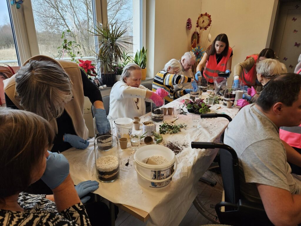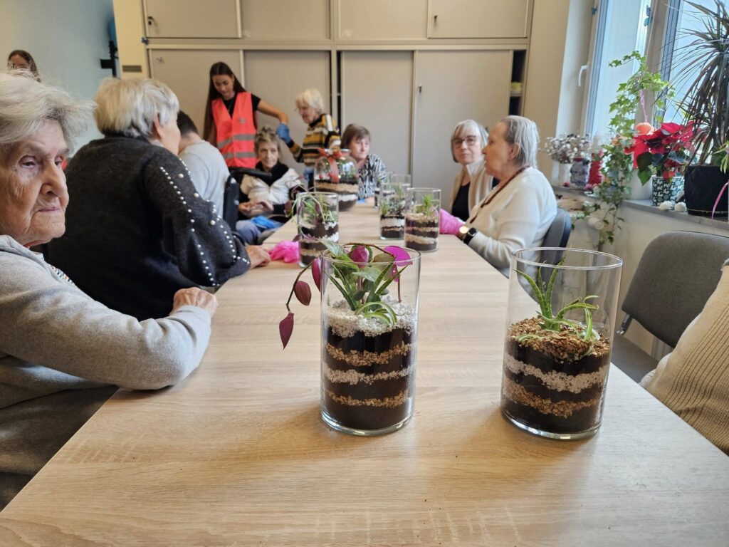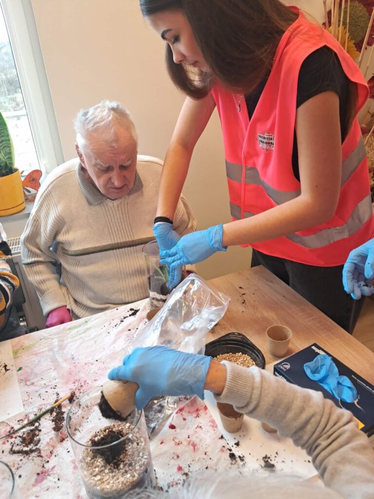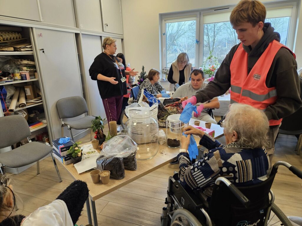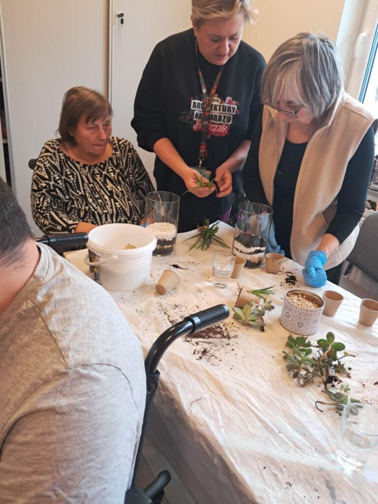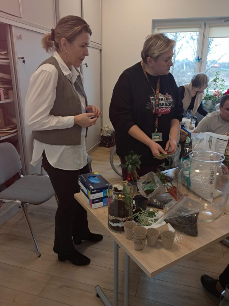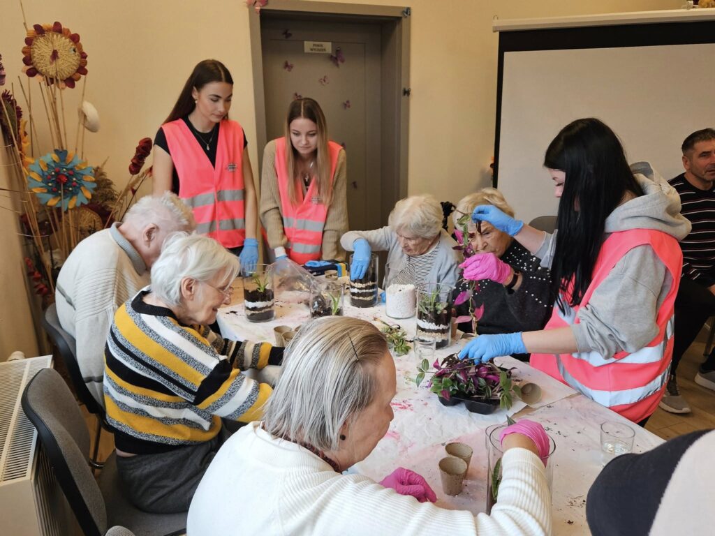 W ramach programu „Tu mieszkam, tu zmieniam EKO”, realizowanego dzięki wsparciu Fundacji Santander Bank Polska, w Magicznym Ogrodzie oraz Centrum Opiekuńczo-Mieszkalnym w Zamościu odbyły się kolejne warsztaty ekologiczne, których celem było promowanie troski o środowisko oraz integracja międzypokoleniowa. Uczniowie Technikum Architektury Krajobrazu w Zamościu, pod opieką pani Renaty Terleckiej, wzięli udział w warsztatach tworzenia lasu w słoiku, prowadzonych przez panią Katarzynę Fornal-Urbańczyk z Wydziału Gospodarki Komunalnej i Ochrony Środowiska, miejskiego ogrodnika miasta Zamość. Zajęcia z hortiterapii odbyły się w Centrum Opiekuńczo-Mieszkalnym i przyniosły wiele radości jego mieszkańcom — osobom starszym i chorym.