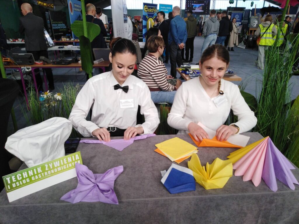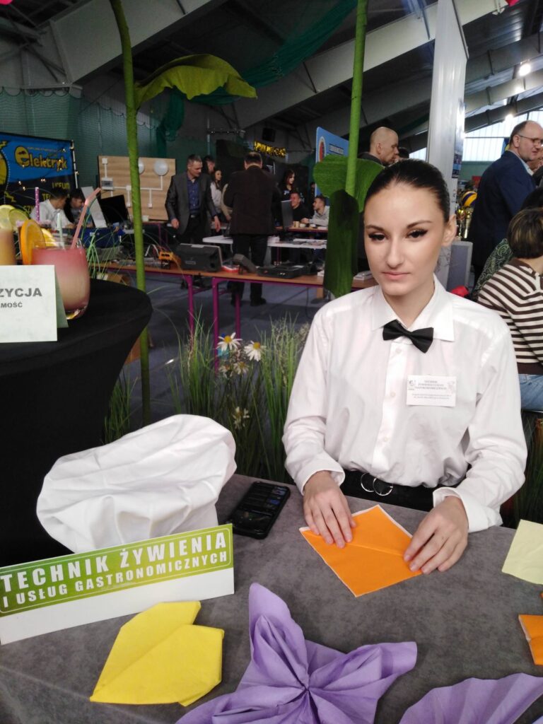 -efektowną prezentację technika żywienia i usług gastronomicznych – carving warzyw i owoców, świąteczne nakrycie stołu oraz pokazy składania serwetek, przygotowane przez p. Agnieszkę Nowak i uczennice klasy 4 TZ.
