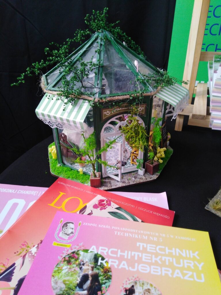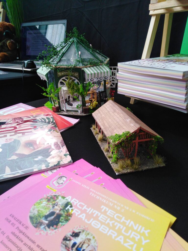 -projekty ogrodów, makiety i prace manualne zaprezentowane przez uczennice z klasy 2 AWZ technikum architektury krajobrazu pod opieką p. Jakuba Zdybla,