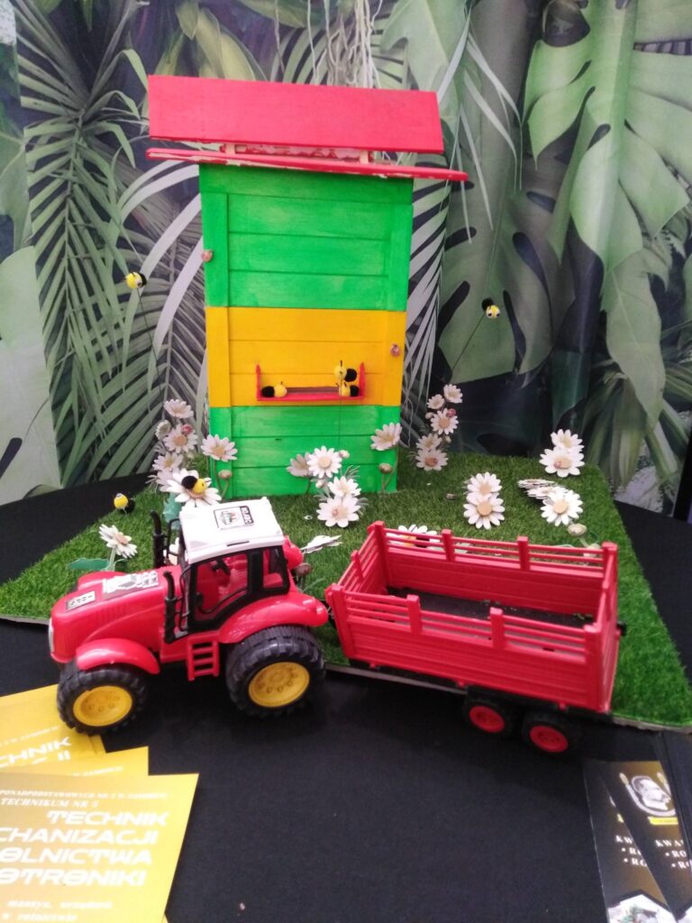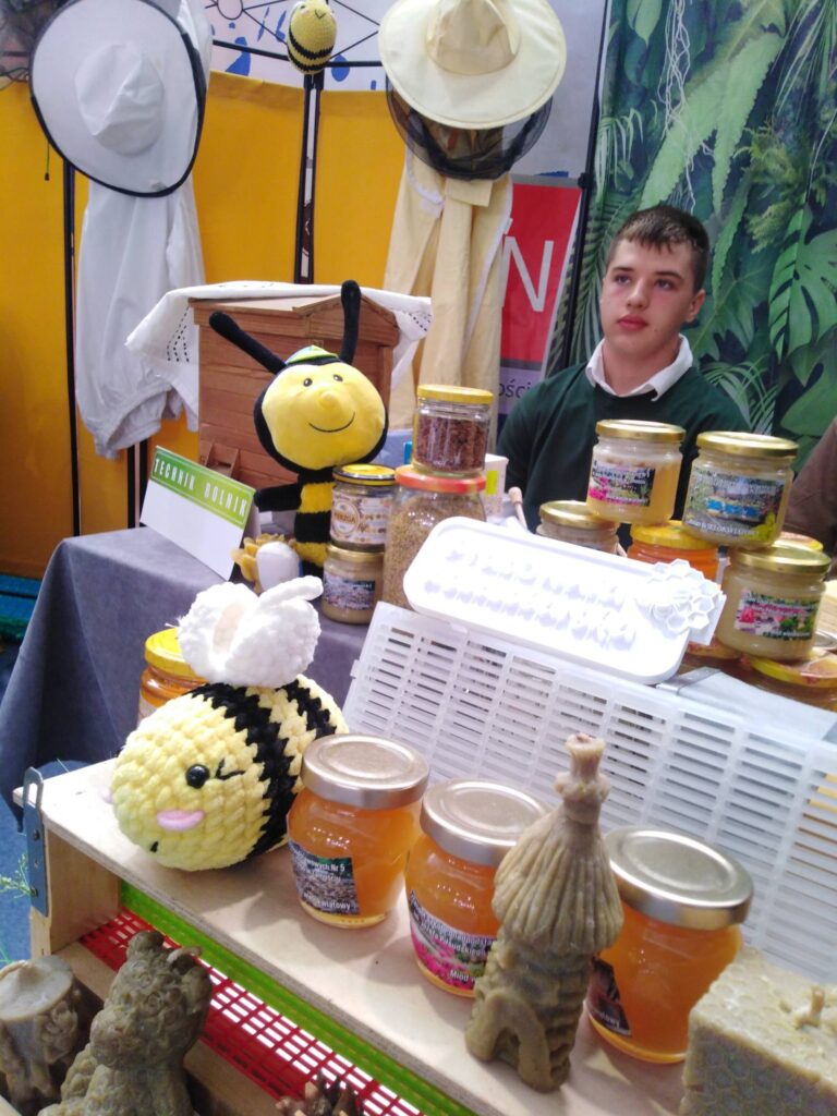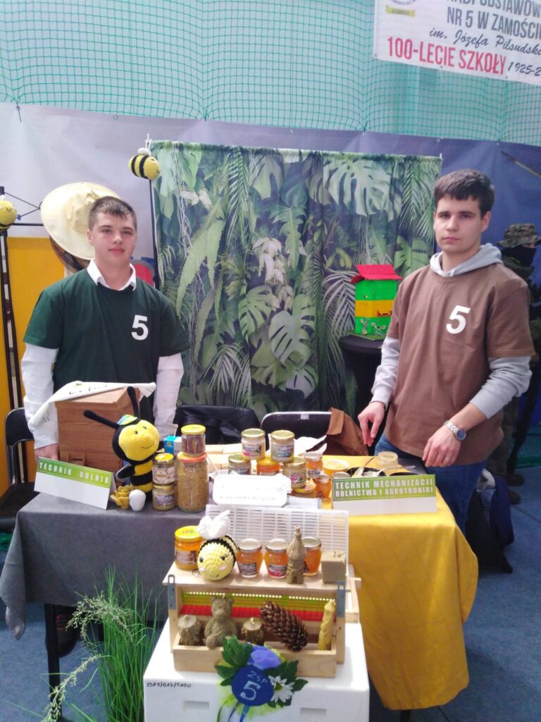 -kącik pszczelarski przygotowany przez p. Pawła Kozłowskiego i uczniów klasy 2 TM i 3 TM, który przyciągał uwagę zarówno młodszych, jak i starszych odwiedzających,