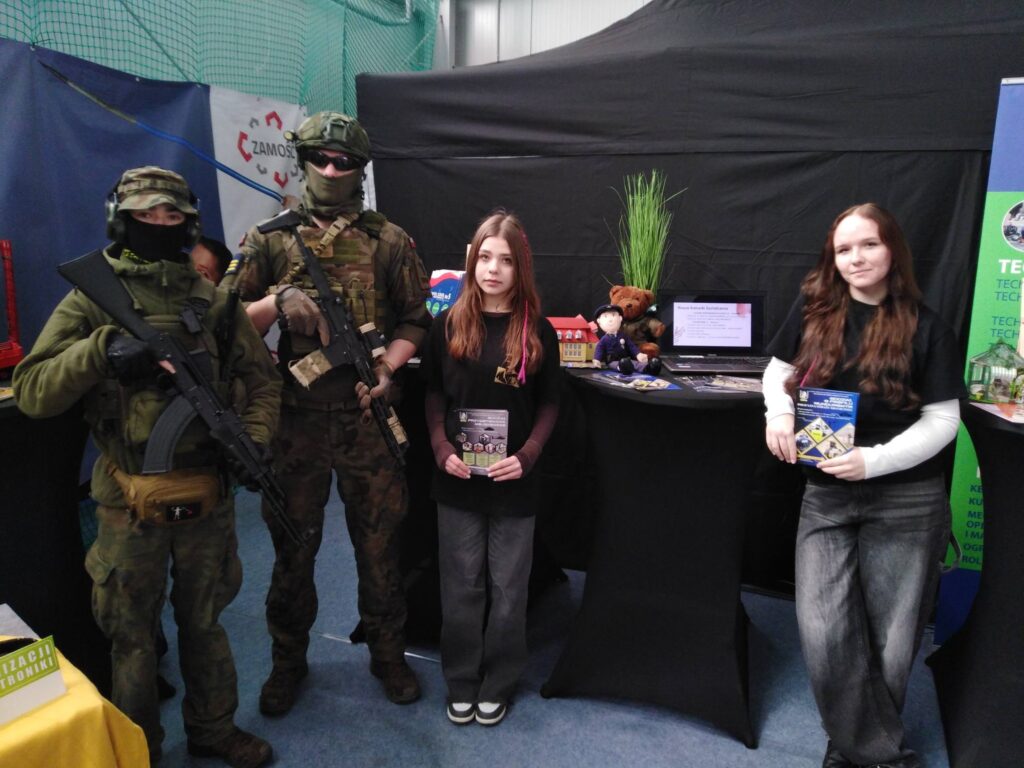 Szkołę godnie reprezentowały uczennice klas 2 LP i 4 LP oraz uczniowie klasy 2 OPW i 3 OPW. Niewątpliwą atrakcją była strzelnica multimedialna, obsługiwana przez p. Rafała Gramatykę, która pozwalała odwiedzającym spróbować swoich sił w bezpiecznych warunkach.