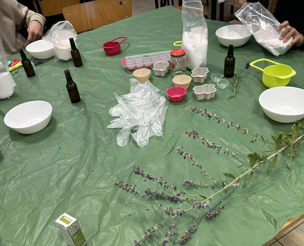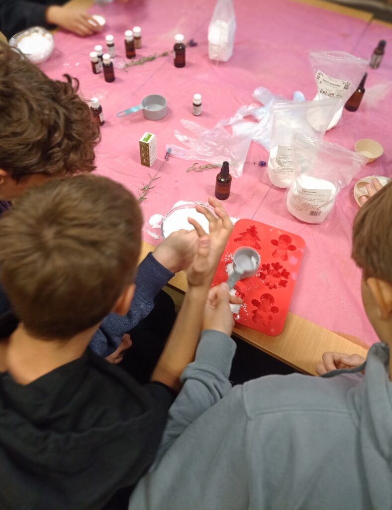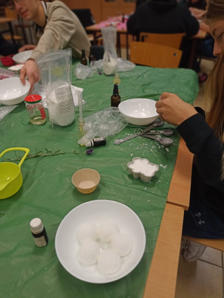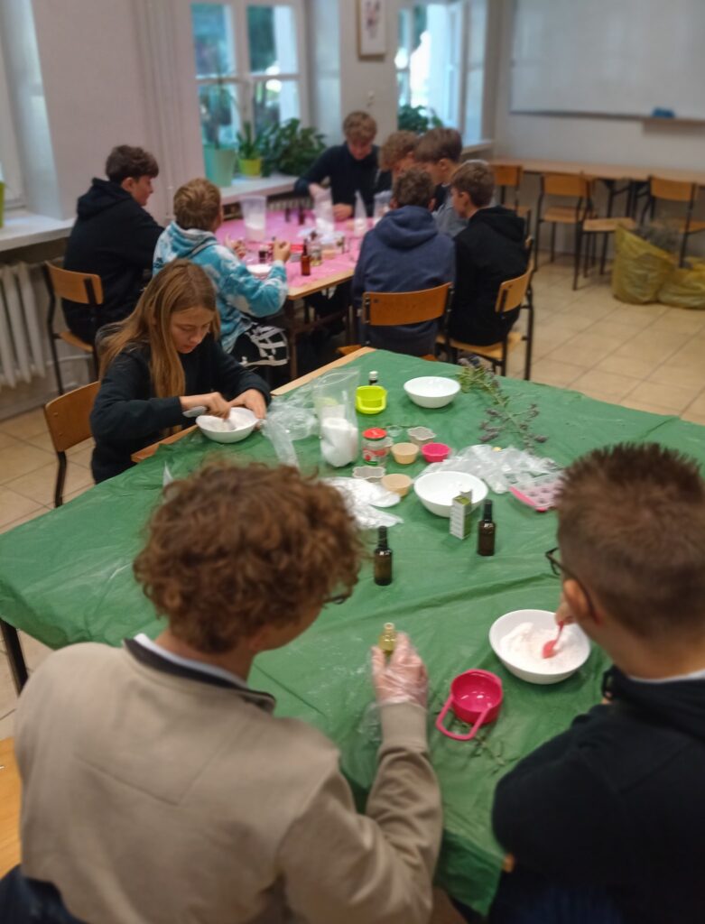 Po poznaniu podstawowych roślin eterycznych i tajników pozyskiwania olejków eterycznych młodzież zabrała się do nauki wykonywania kul kąpielowych.