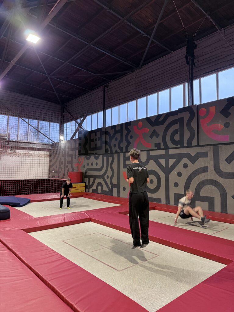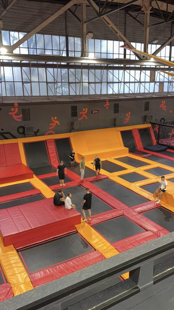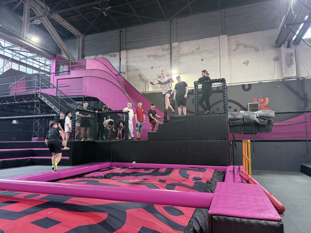 Rozpoczęliśmy od dobrej zabawy w parku trampolin Hangar 646. Zjeżdżalnie, trampoliny, ścianka wspinaczkowa, tyrolka, strefa gladiatorów, wieża skoków, tor przeszkód to tylko niektóre z atrakcji z których skorzystali nasi uczniowie.