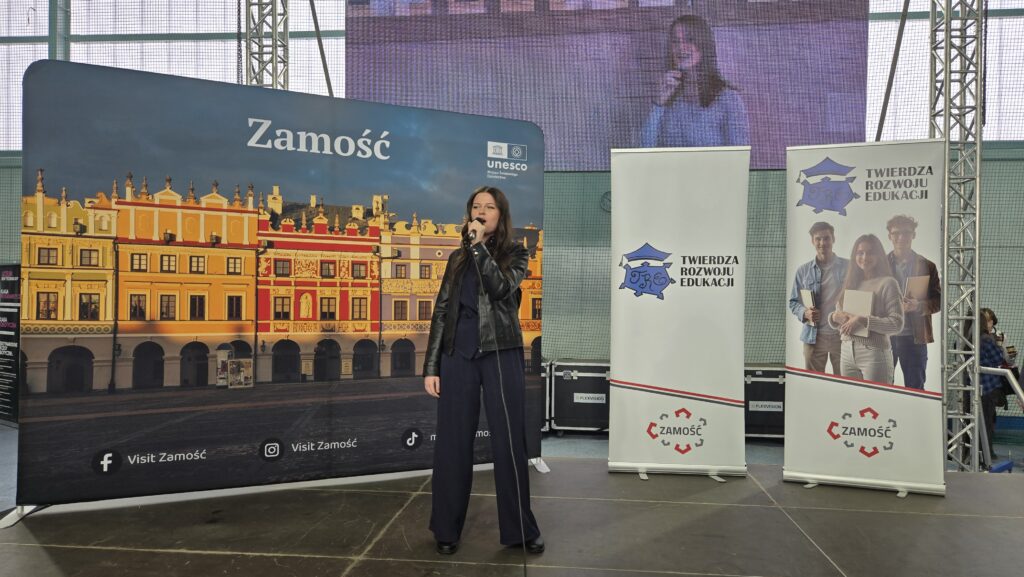 Uczennice Aleksandra Gierszon (klasa 1LM) oraz Milena Gontarz (klasa 1TWZ), wokalistki szkolnego zespołu muzycznego, reprezentowały naszą szkołę podczas zamojskich targów edukacyjnych ‘Twierdza Rozwoju Edukacji 2026’ zorganizowanych przez Wydział Oświaty Urzędu Miasta Zamość, które odbyły się w hali OSiR 20 marca 2026 roku.