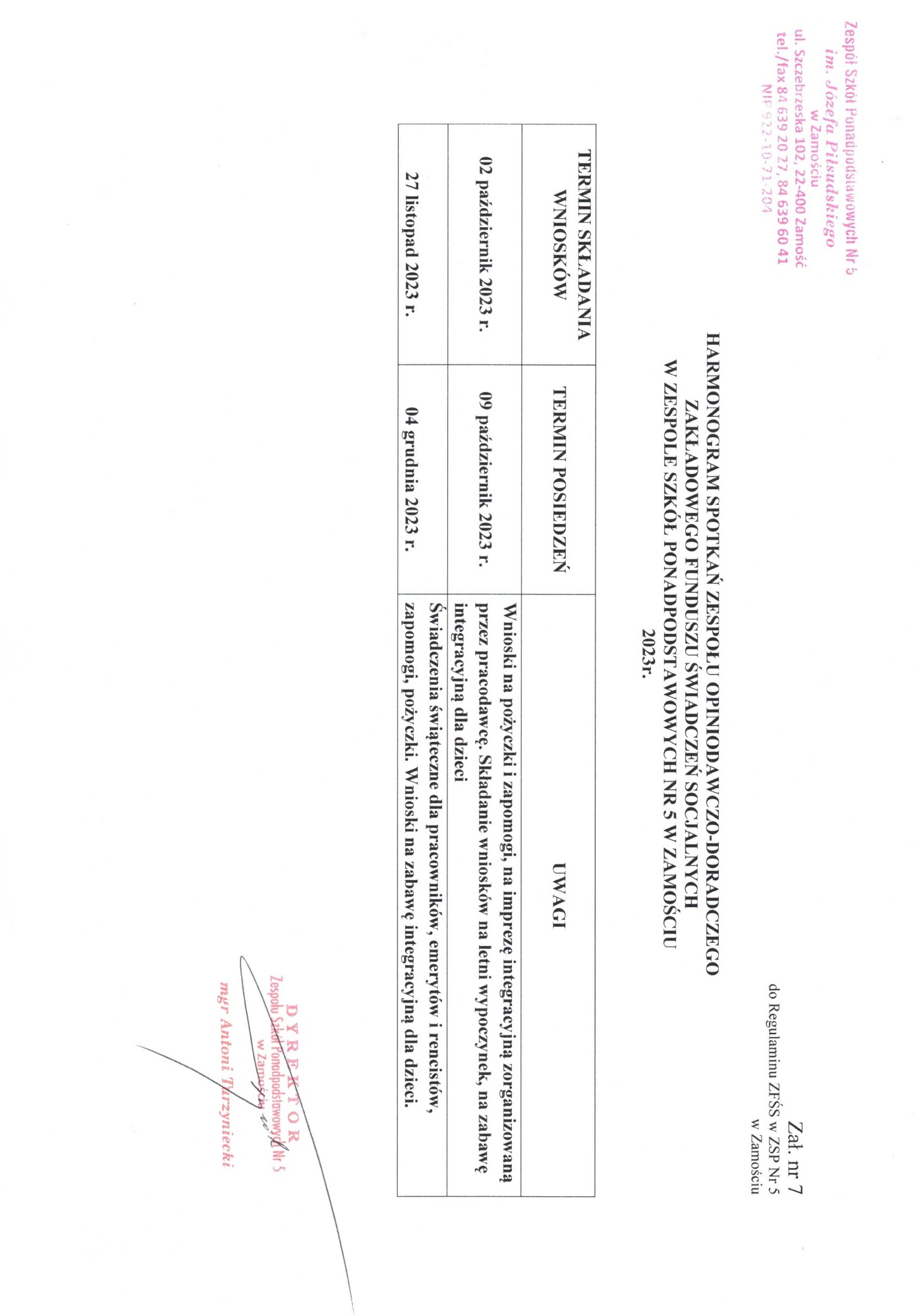 zał. 7 – terminarz posiedzeń komisji ZFŚS