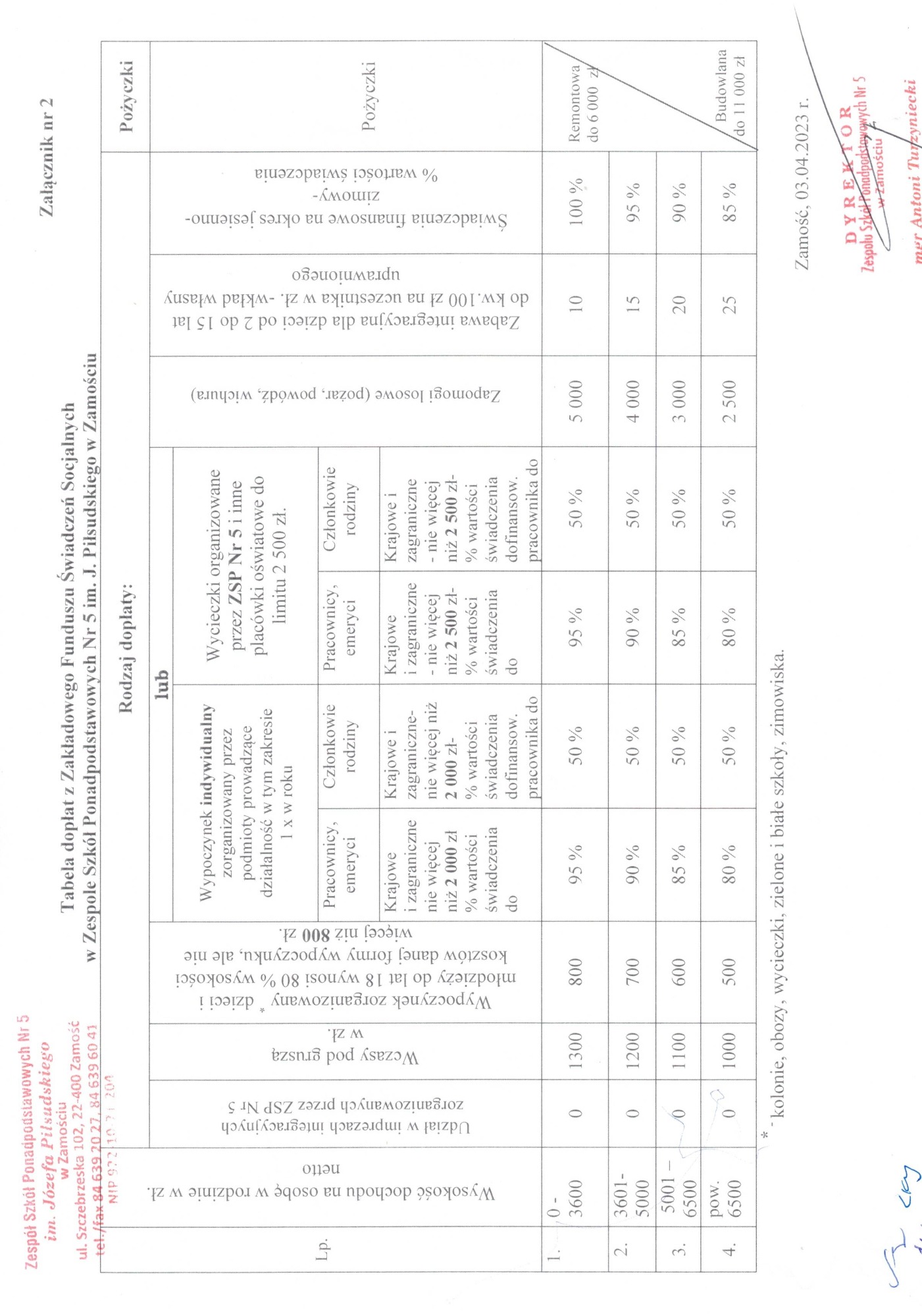 zał. 2 – Tabela dopłat