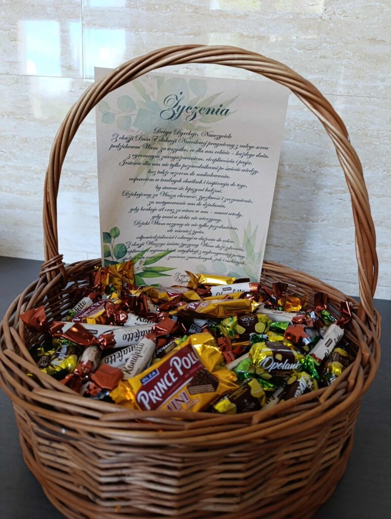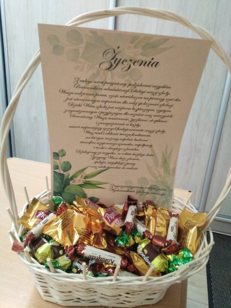 Na zakończenie spotkania wychowankowie przekazali wszystkim pracownikom szkoły słodki upominek w postaci cukierków, jako symbol wdzięczności i miłego gestu pamięci.
